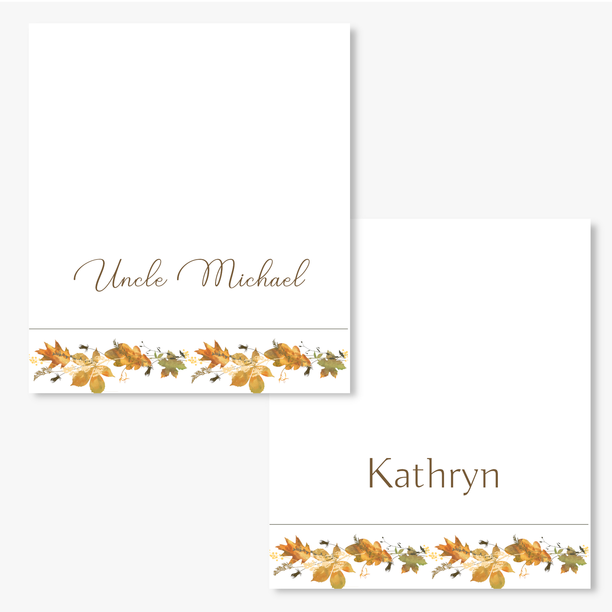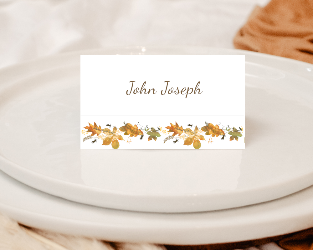 Add a touch of seasonal charm to your special event with our Autumn Leaves Border Place Cards. These elegant place cards feature a beautiful autumn leaf border design, perfect for any fall occasion. Impress your guests and create a warm, welcoming atmosphere with these stylish and functional place cards.