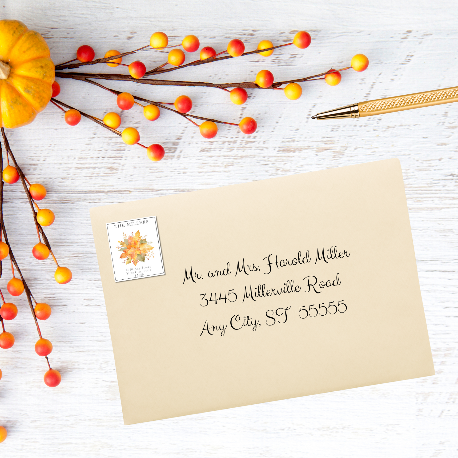 Add a touch of autumn beauty to your mailings with our watercolor Autumn Leaves Printed Return Address Labels. These labels are not only aesthetically pleasing, but also save you time when sending out letters and packages. Make a great first impression with a touch of seasonal charm.