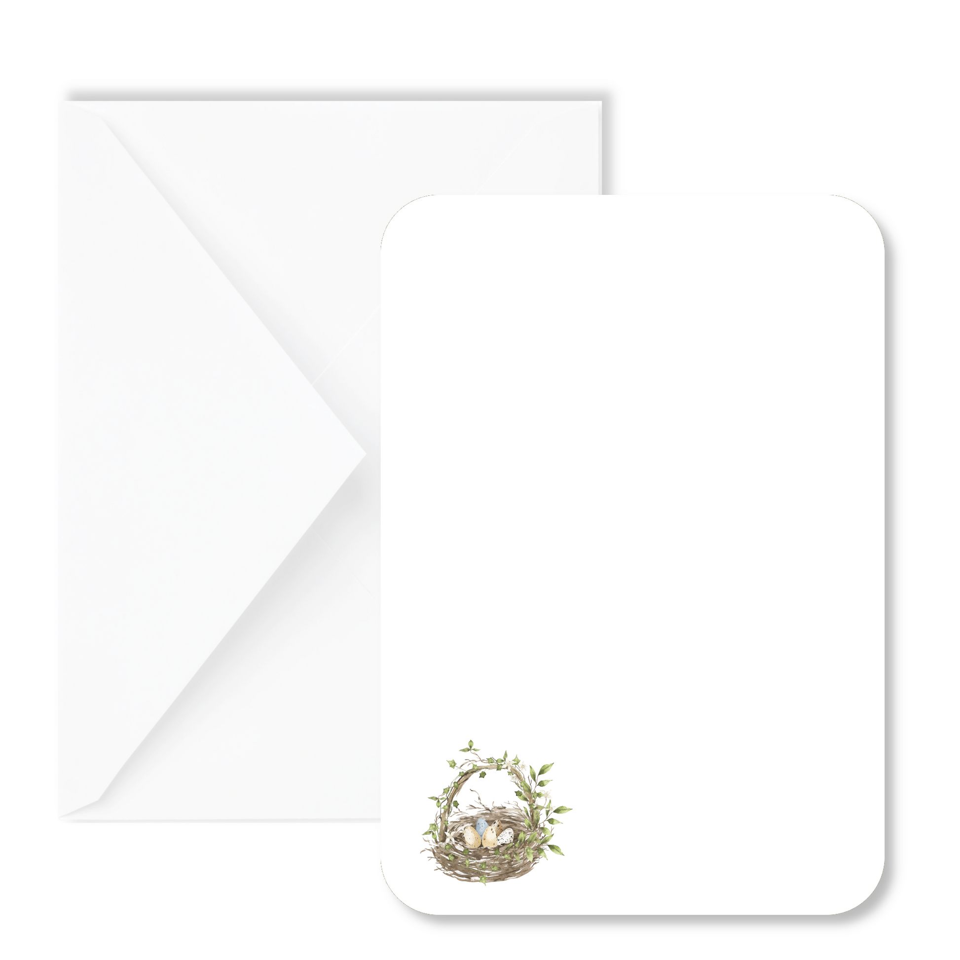 These charming mini note cards feature a charming watercolor image of a bird's nests nestled in a rustic twig basket. Perfect for a thoughtful handwritten note or to add a touch of nature to your gift wrapping. Share the beauty of nature with these adorable note cards.
