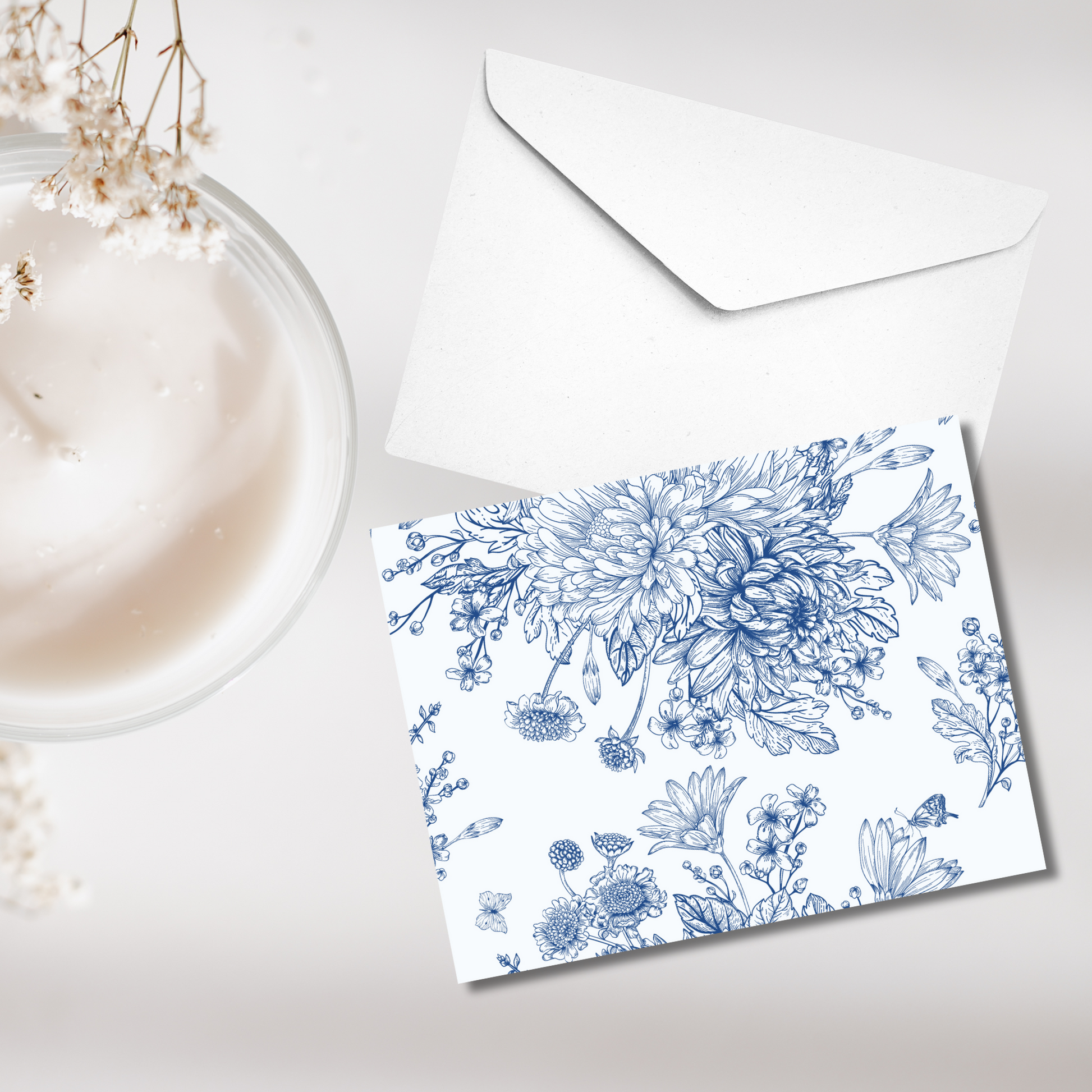 Add a personal touch to your correspondence with our Blue Floral Line Art Note Card Set. The delicate design features elegant blue florals, perfect for any occasion. Each set includes unique cards with white envelopes, making it a thoughtful gift for loved ones or a chic addition to your stationery collection.