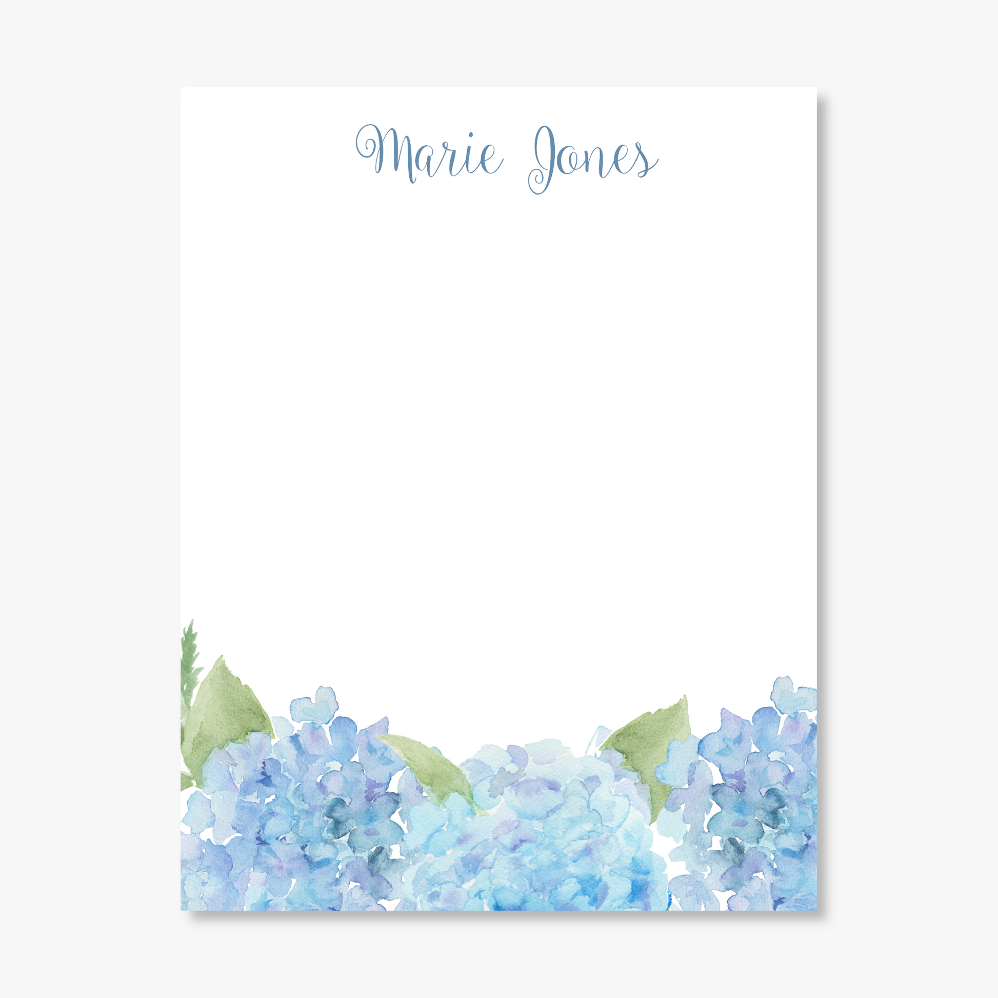 Blue Hydrangea Border Watercolor Note Pad | 50 Sheets