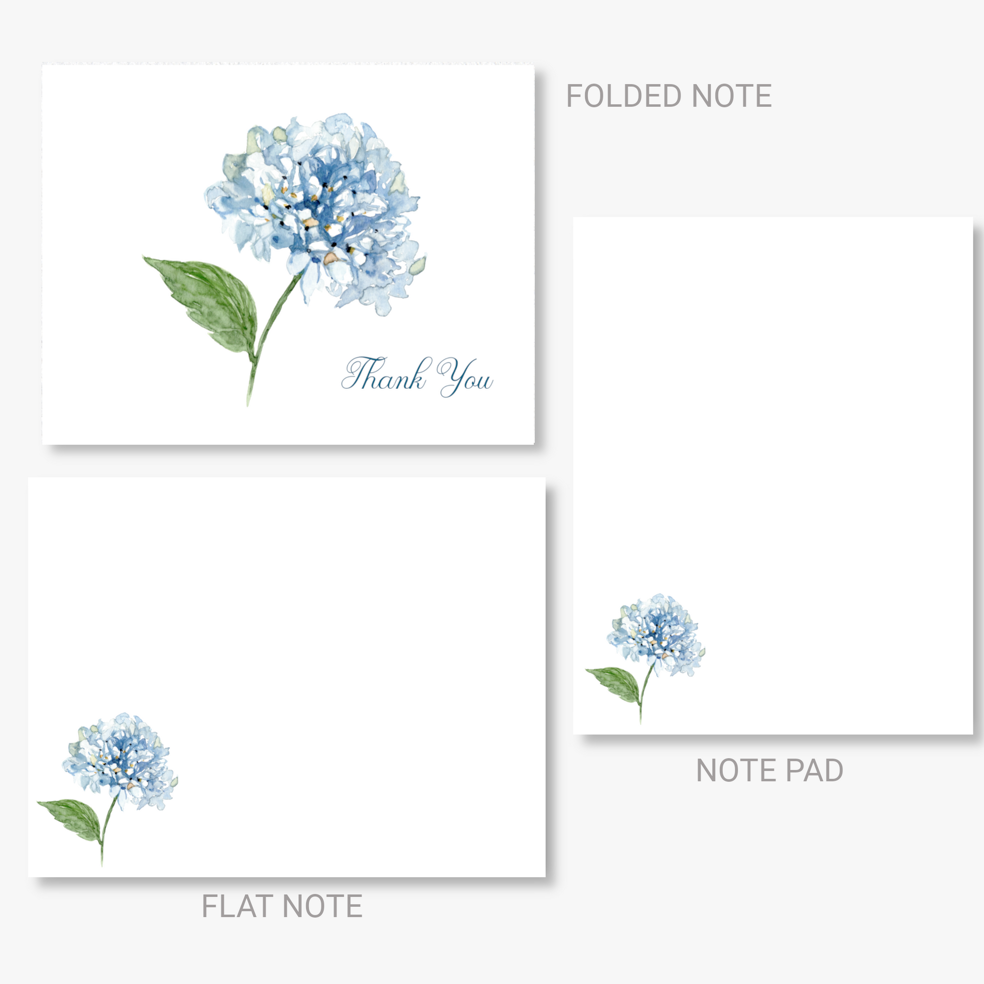 Elevate your gift-giving game with our Blue Hydrangea Stationery Set. This watercolor gift set features a beautiful blue hydrangea design that is sure to brighten up anyone's day. Set includes folded notes, flat notes, and notepad. Show your thoughtfulness with this versatile stationery set.