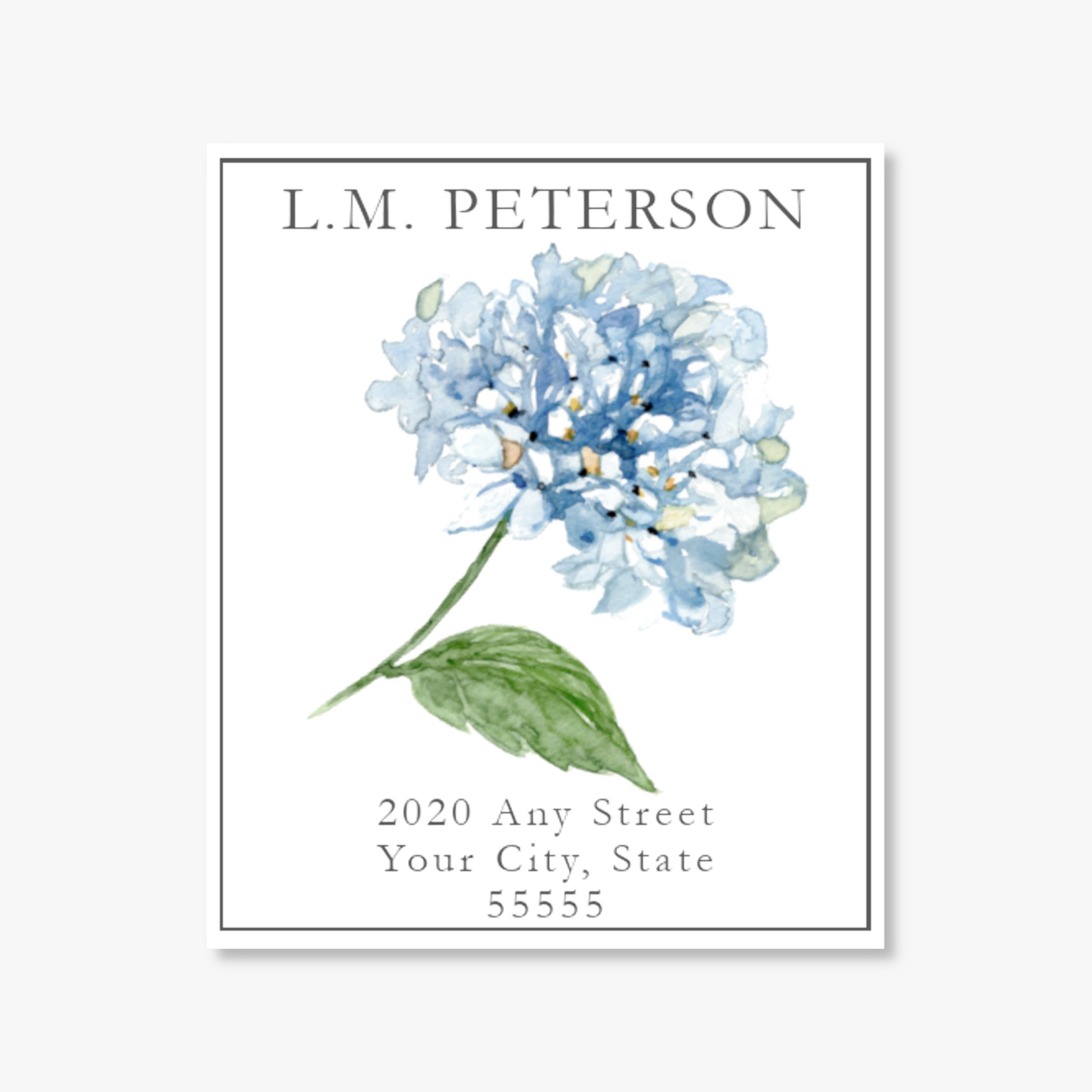 Blue Hydrangea Watercolor Printed Return Address Labels