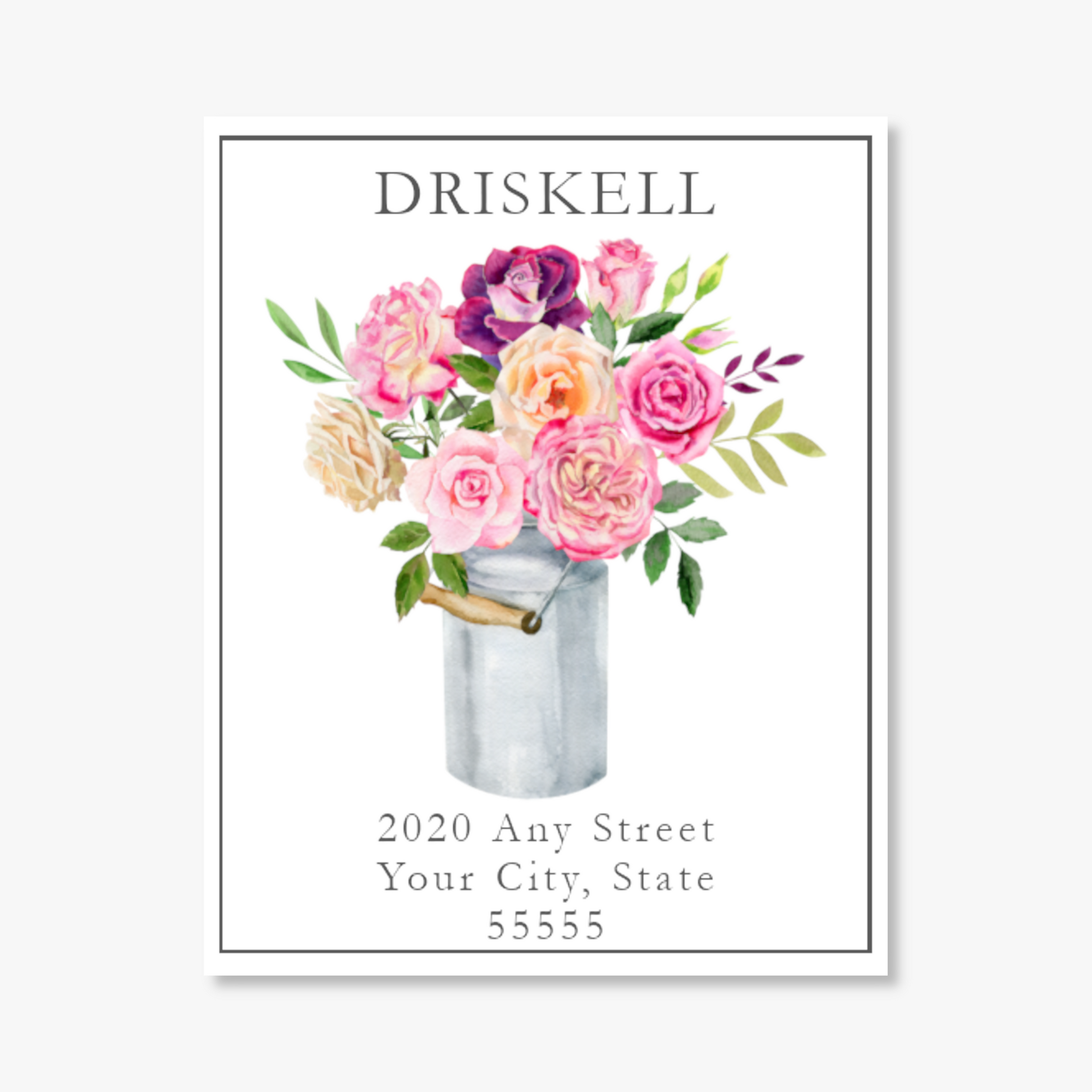 Easily add a touch of elegance to your correspondence with our Bucket of Roses Printed Return Address Labels. With a charming design of brightly colored roses in a bucket, these labels are a stylish and convenient way to personalize your envelopes. Show your attention to detail and make a lasting impression with every letter.