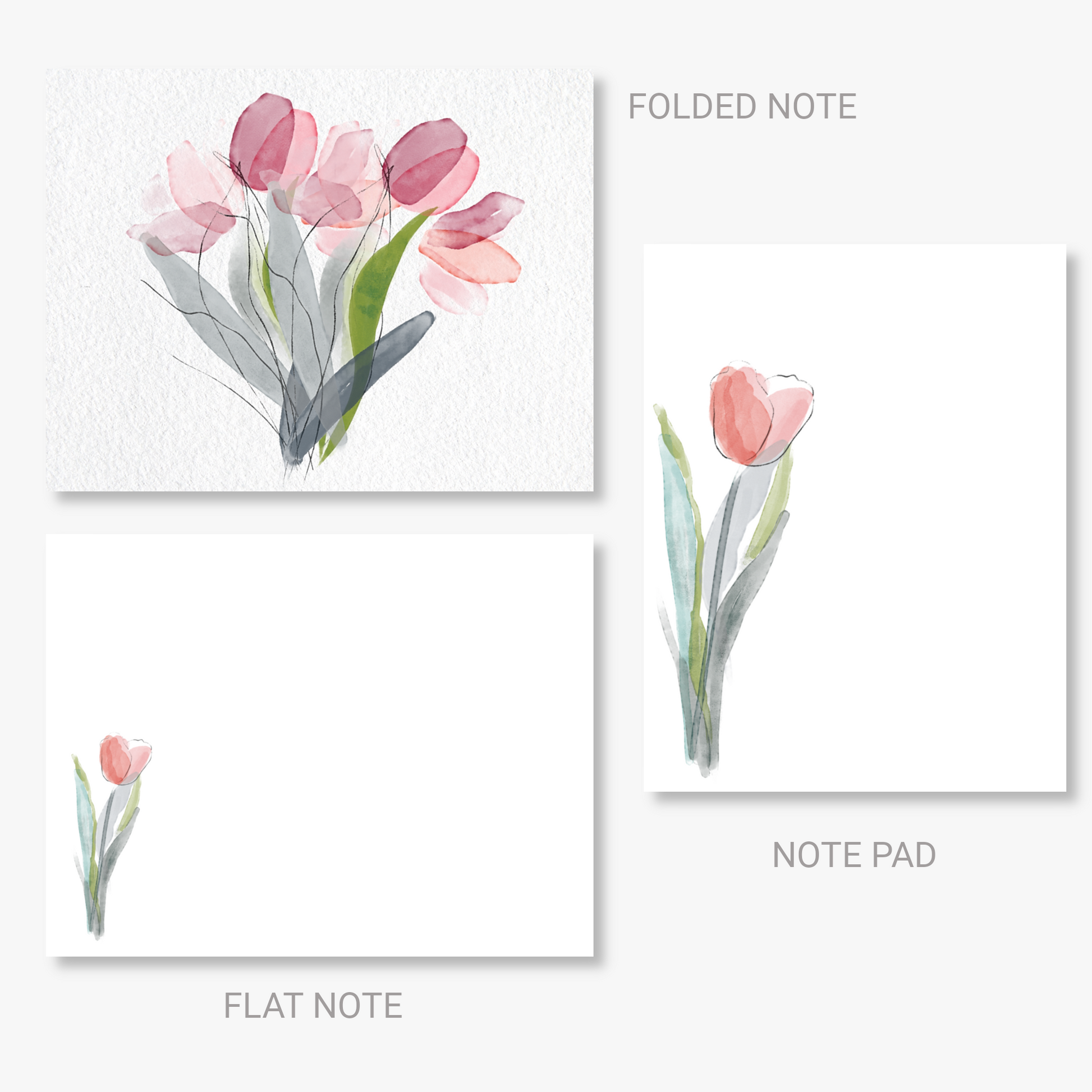 Introducing our Line Art Tulips Stationery Set! This set includes folded notes, flat notes, and a notepad, all adorned with vibrant watercolor florals. Perfect as a personalized gift or purchase as a set and divide into individual gifts for your loved ones. Elevate your gift-giving with our coordinated stationery set.