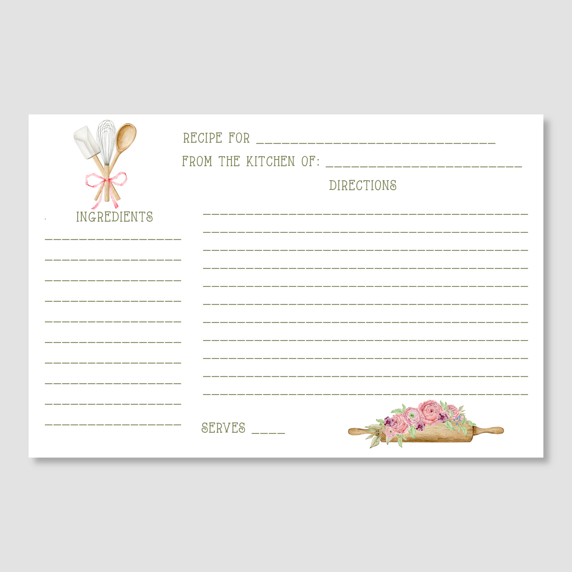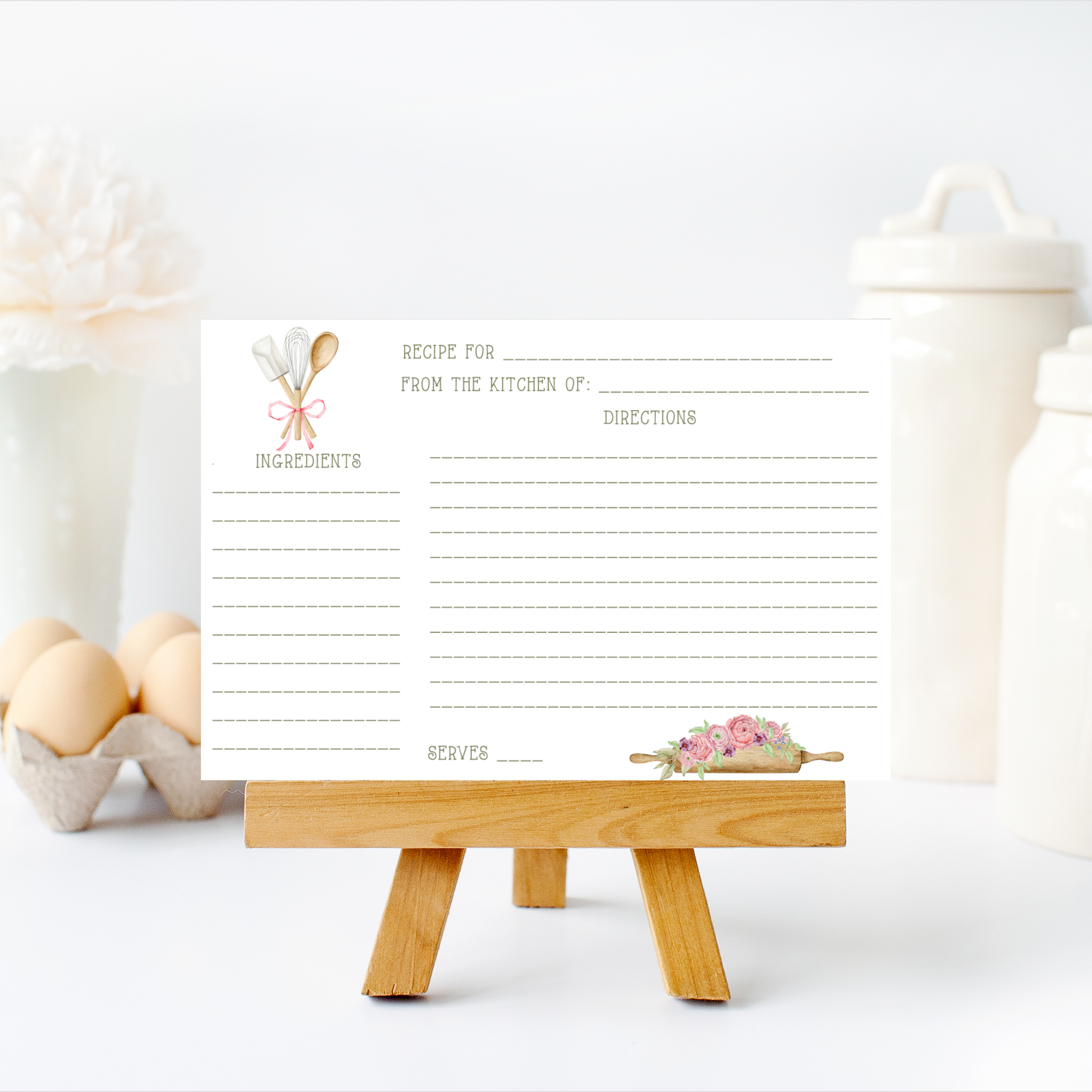 Elevate your baking game with our Floral Baking Utensils Recipe Card. Designed with beautiful floral illustrations, this recipe card is both functional and aesthetically pleasing. Keep all your favorite recipes organized with this must-have kitchen essential. Makes a fantastic kitchen shower gift.