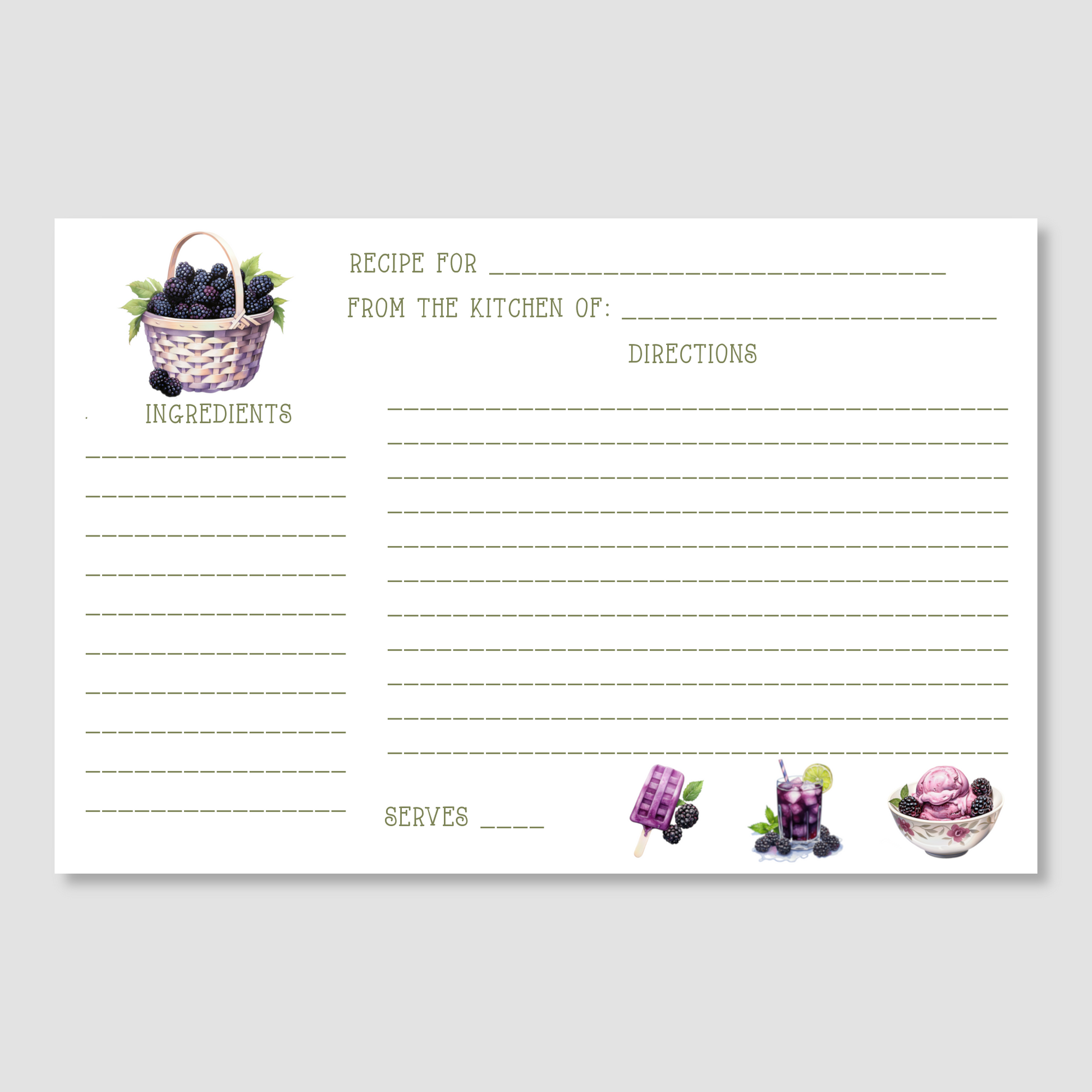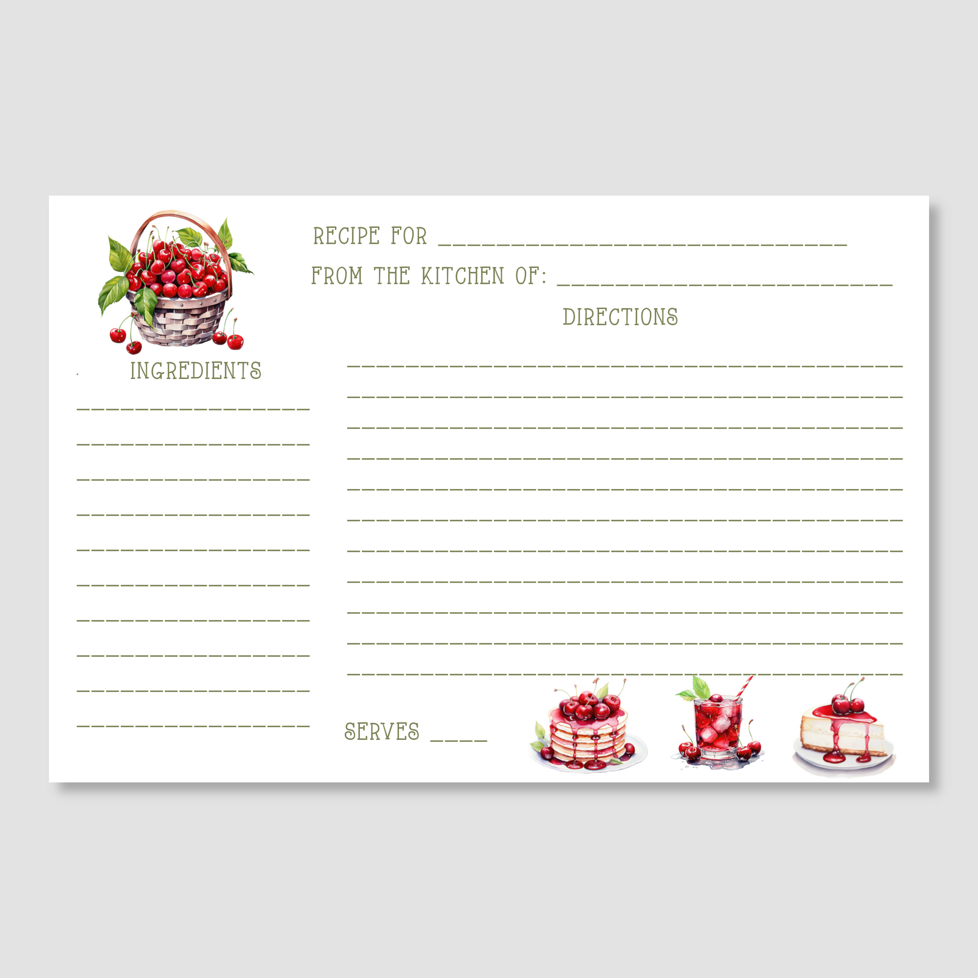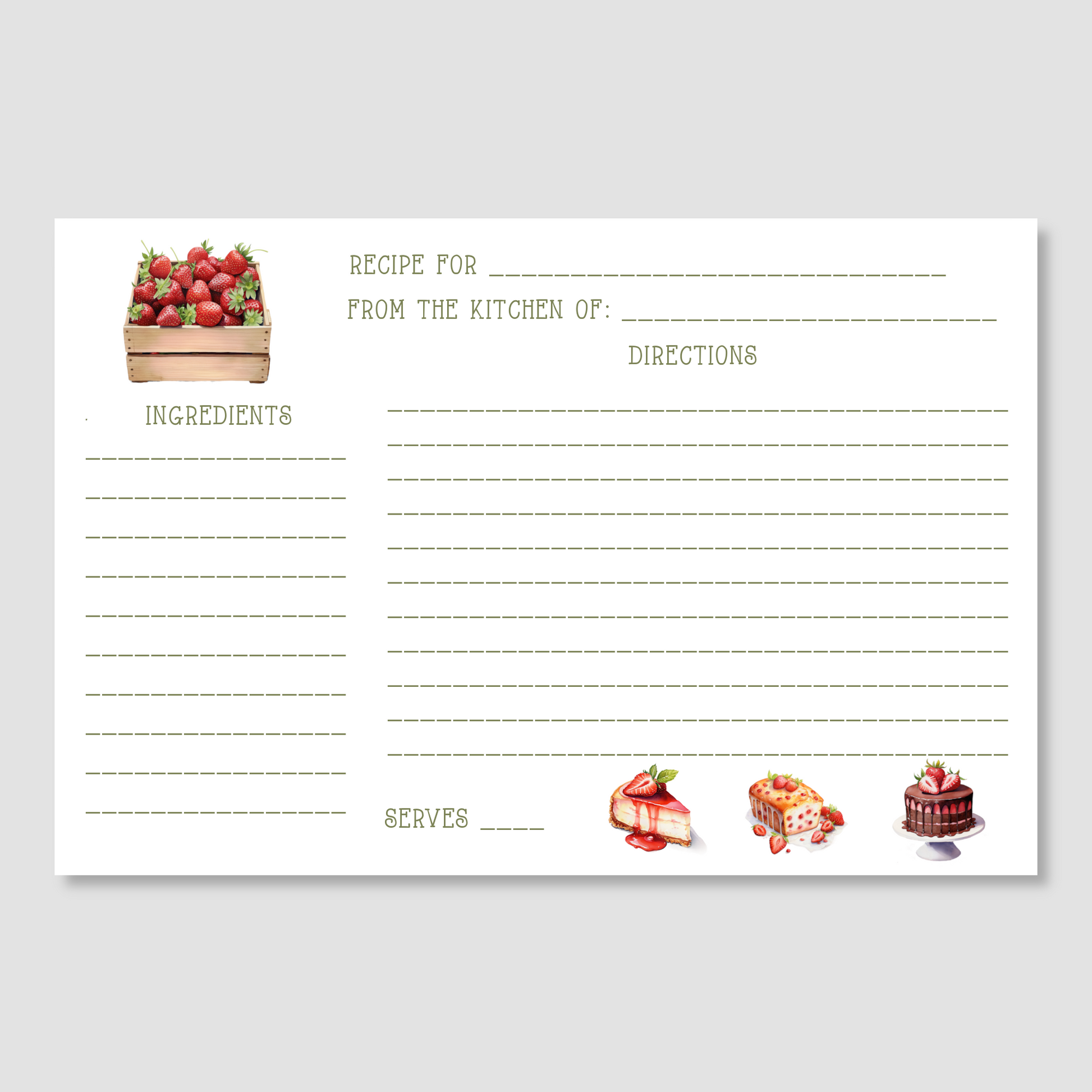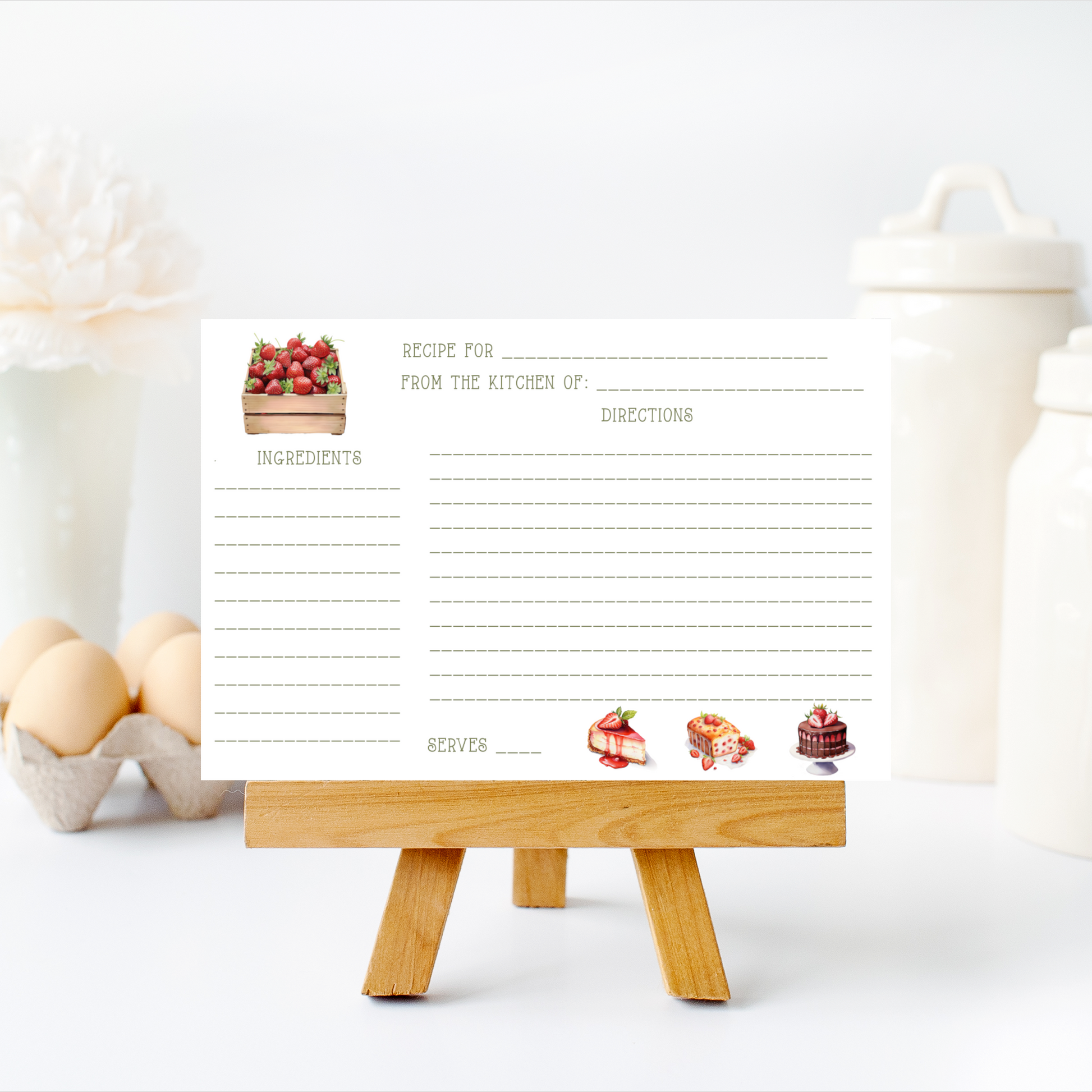 Elevate your baking game with our Fruit Desserts Watercolor Printed Recipe Cards. Featuring stunning watercolor designs, these cards are perfect for your favorite apple, blueberry, cherry, orange, blackberry, and strawberry desserts. Simplify and organize your recipes with style.
