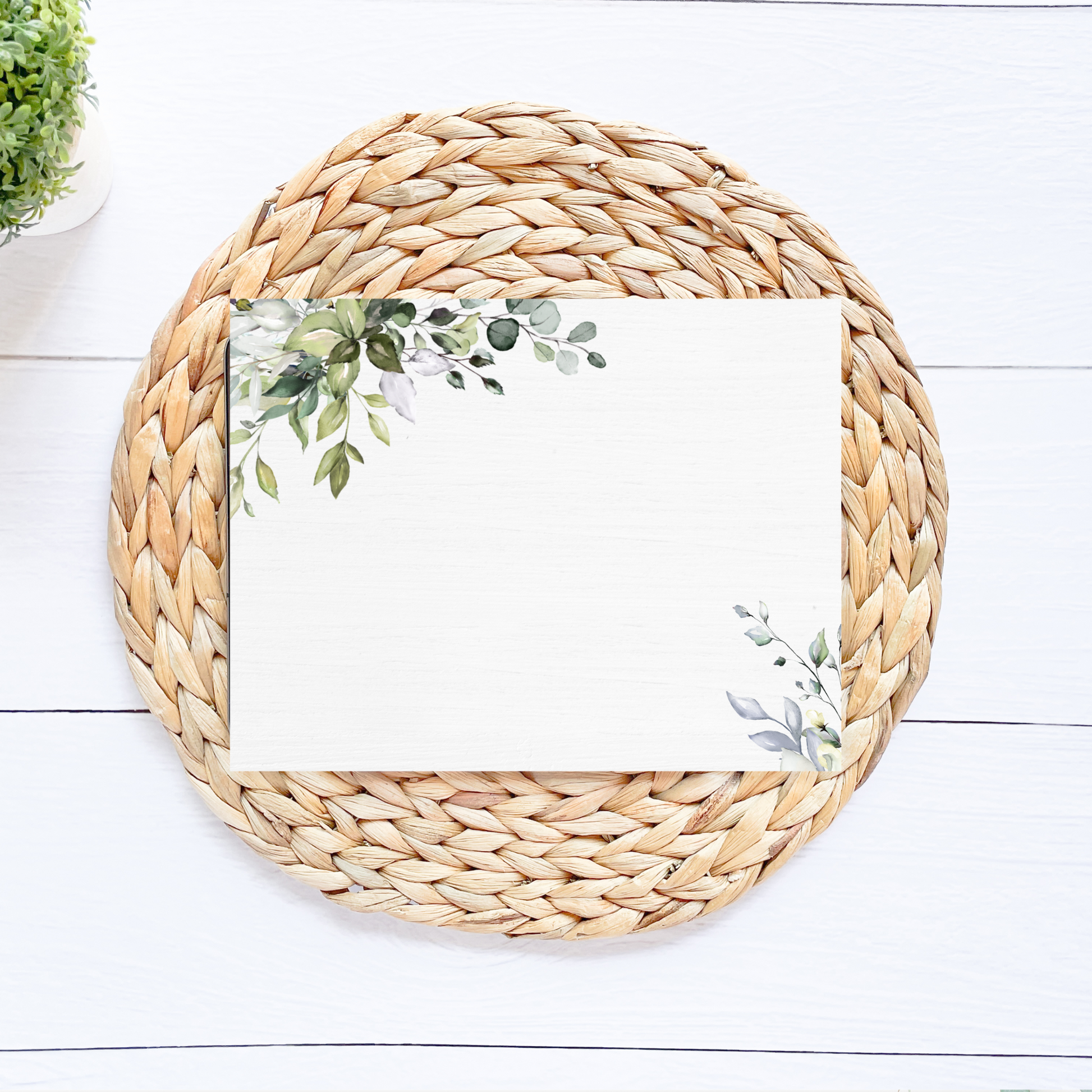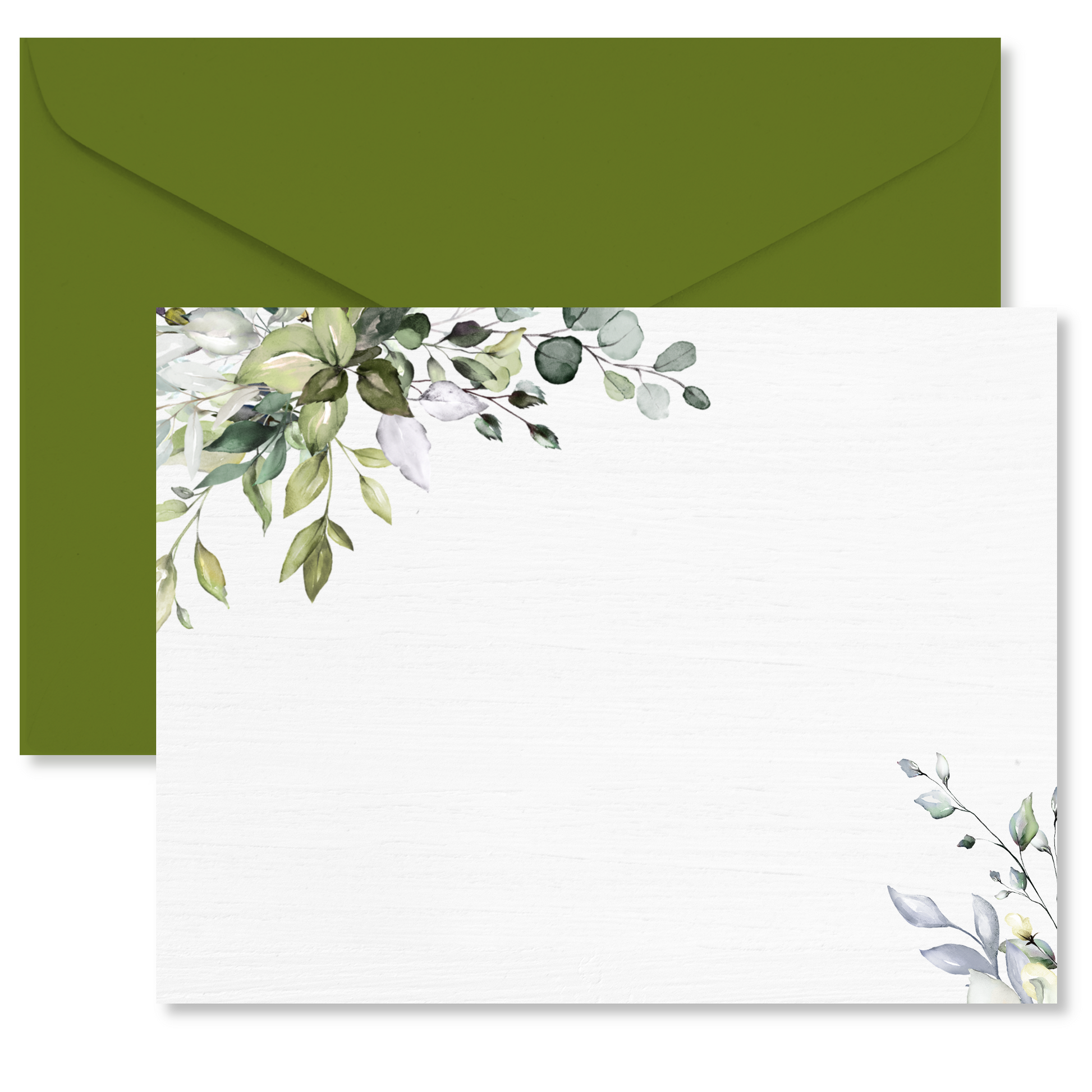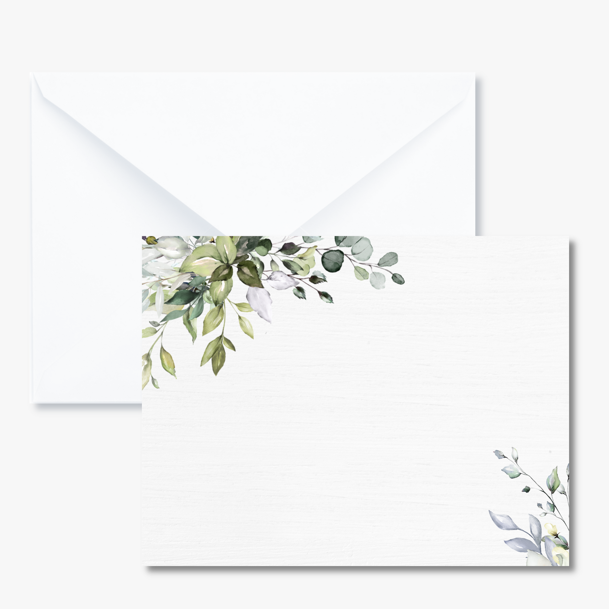Enhance your correspondence with our Lush Greenery Flat Note Card Set. These elegant cards feature a lush greenery design, perfect for sending heartfelt messages and thank you notes. Made with high-quality materials, this set is a must-have for any thoughtful and stylish individual. Show you care with every handwritten note.