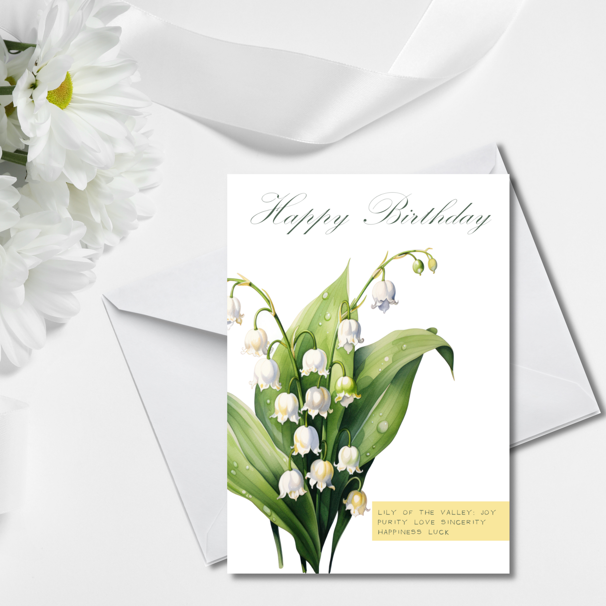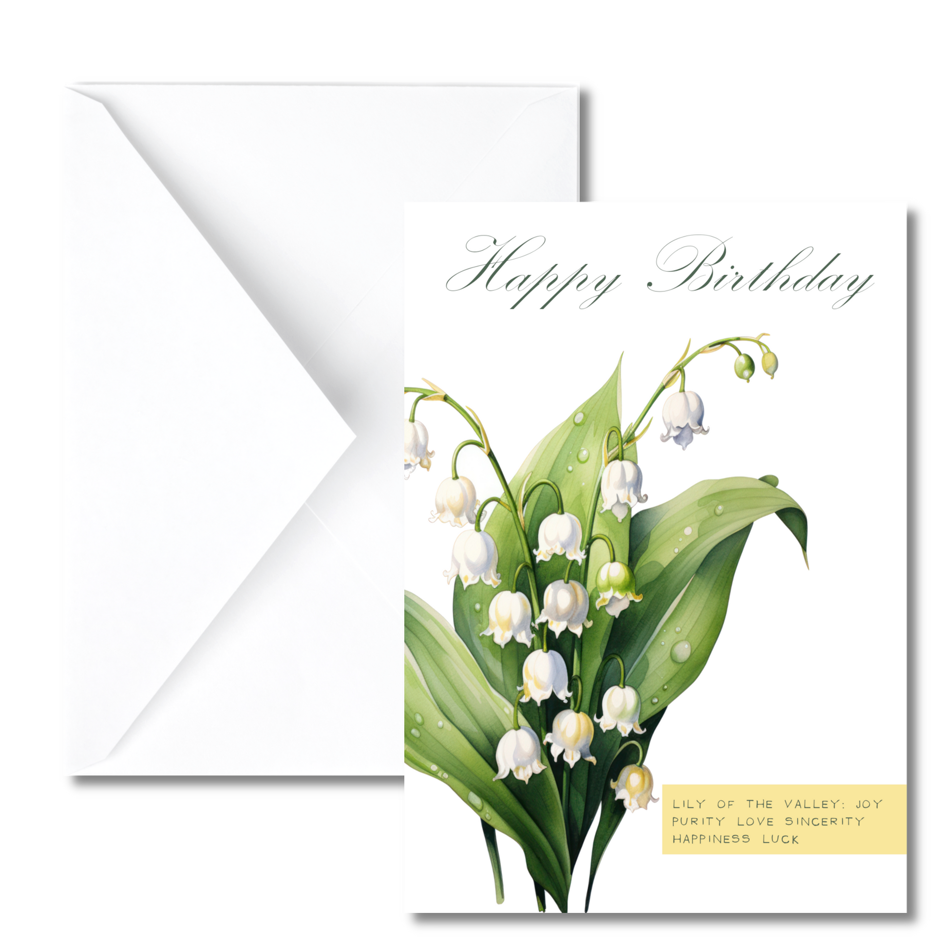 Celebrate your loved ones born in May with our unique birthday month flower greeting cards! Each card features charming watercolor illustrations of the beautiful birth flower for each month, as well as the unique attributes and symbolism of each flower. Make their birthday extra special with these delightful and meaningful greetings!