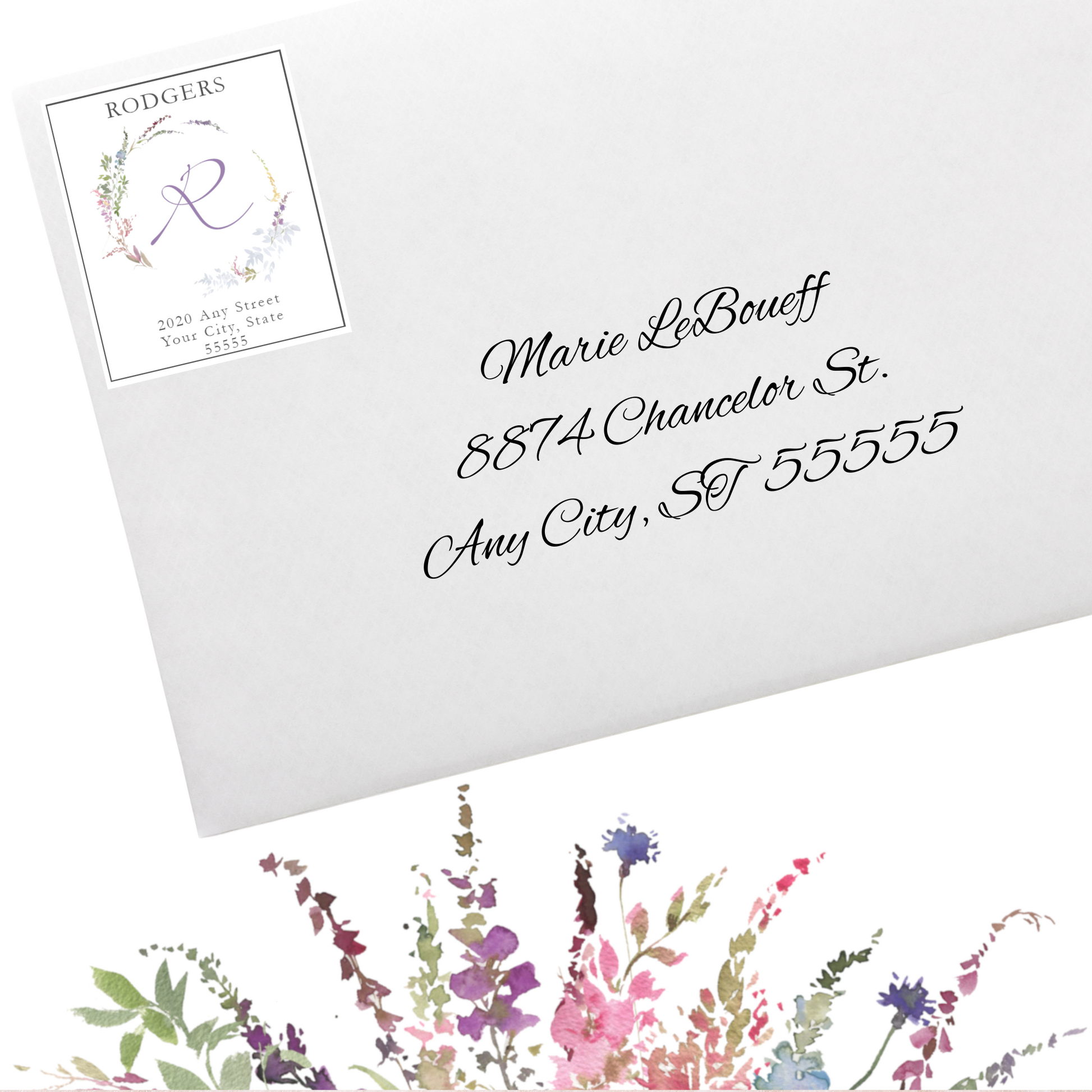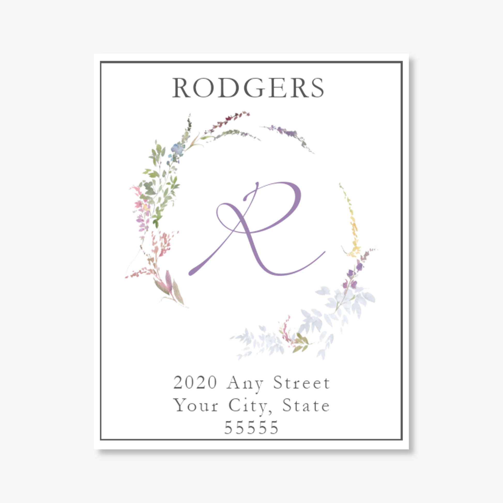 Meadow Floral Wreath Monogrammed Return Address Labels