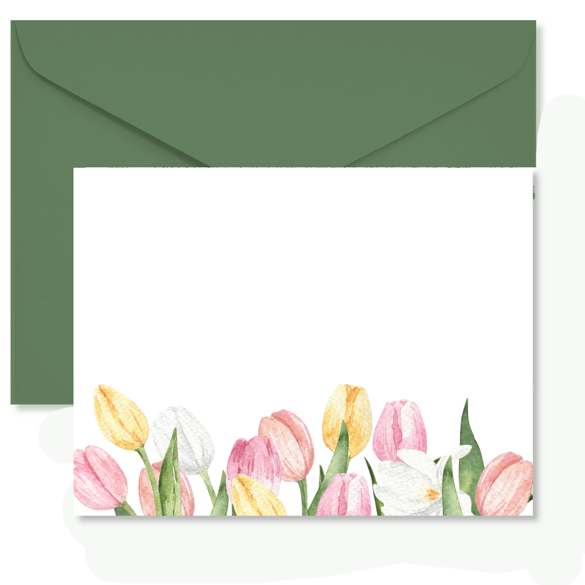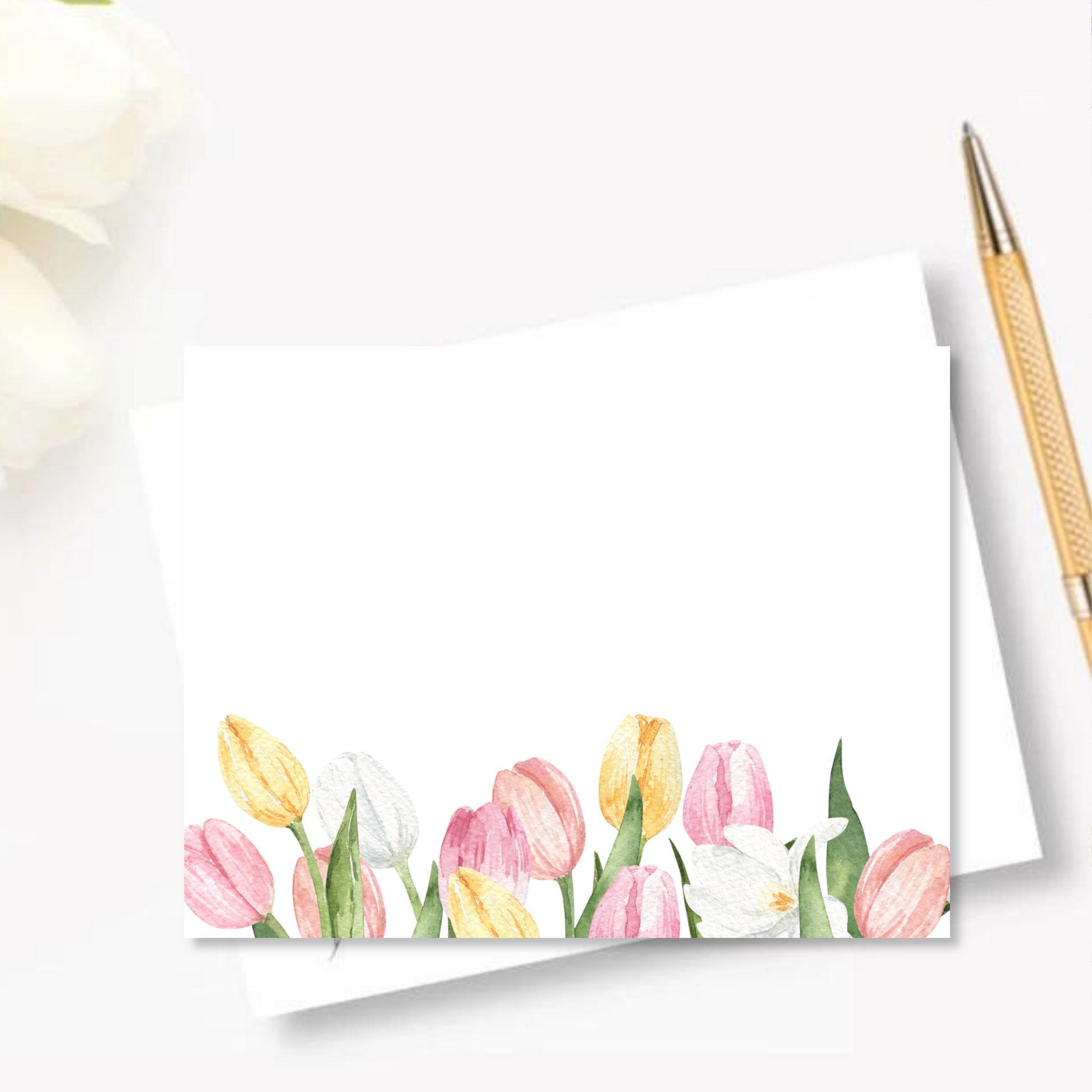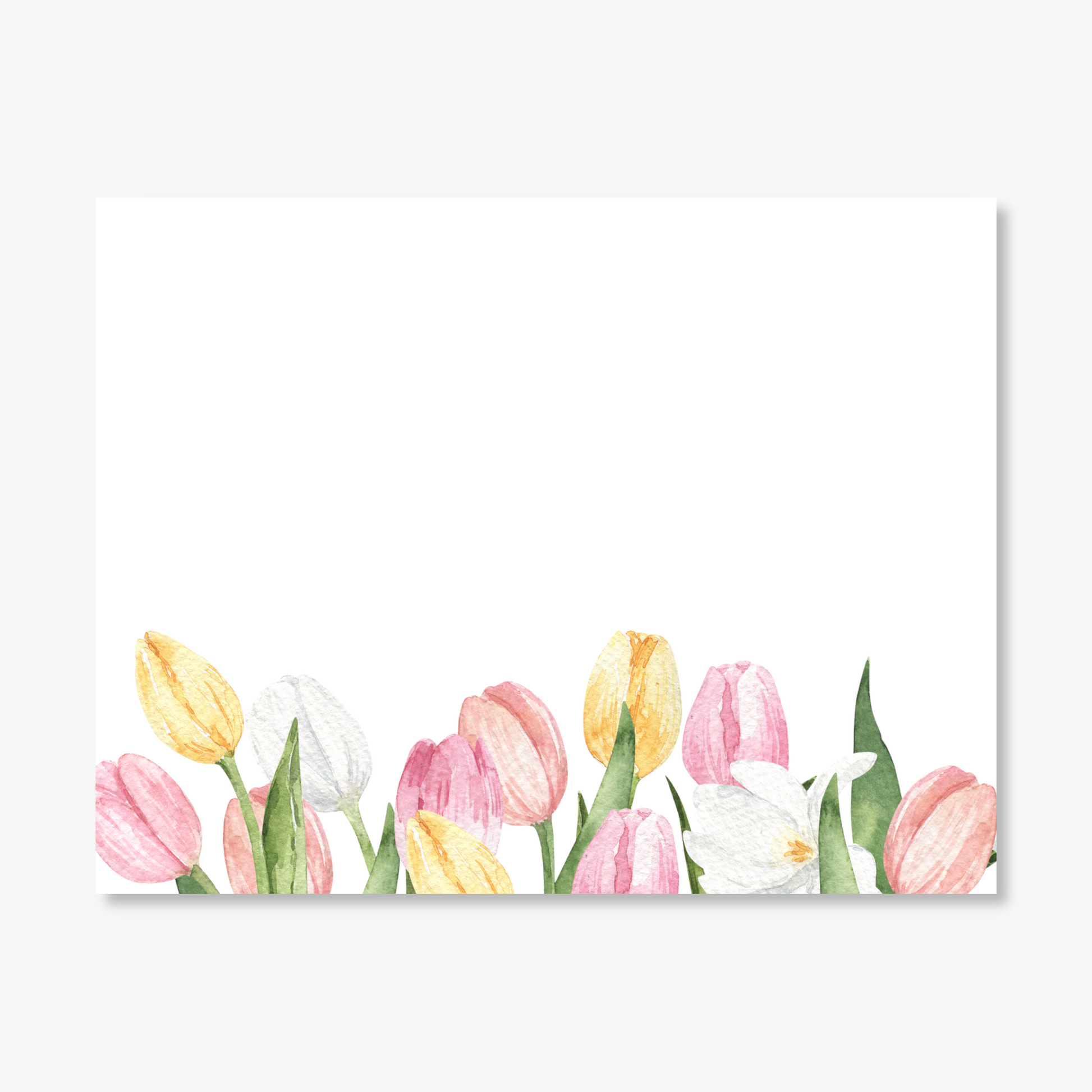These Pastel Tulip Border Flat Notes are the perfect way to add a touch of elegance to your written correspondence. Featuring a charming border of watercolor tulips in soft pastel hues, these flat notes will make any message stand out. Perfect for sending a heartfelt note to a loved one or adding a personal touch to your business correspondence.