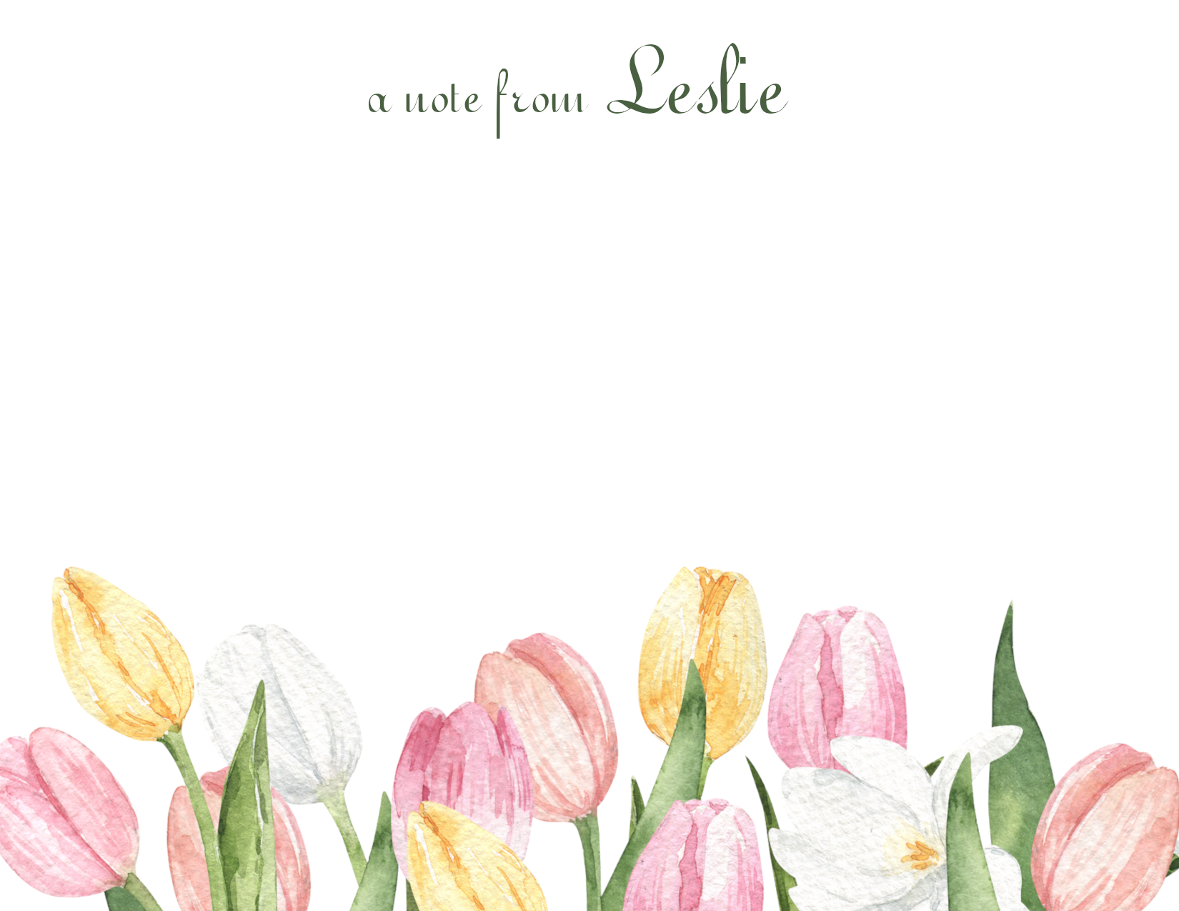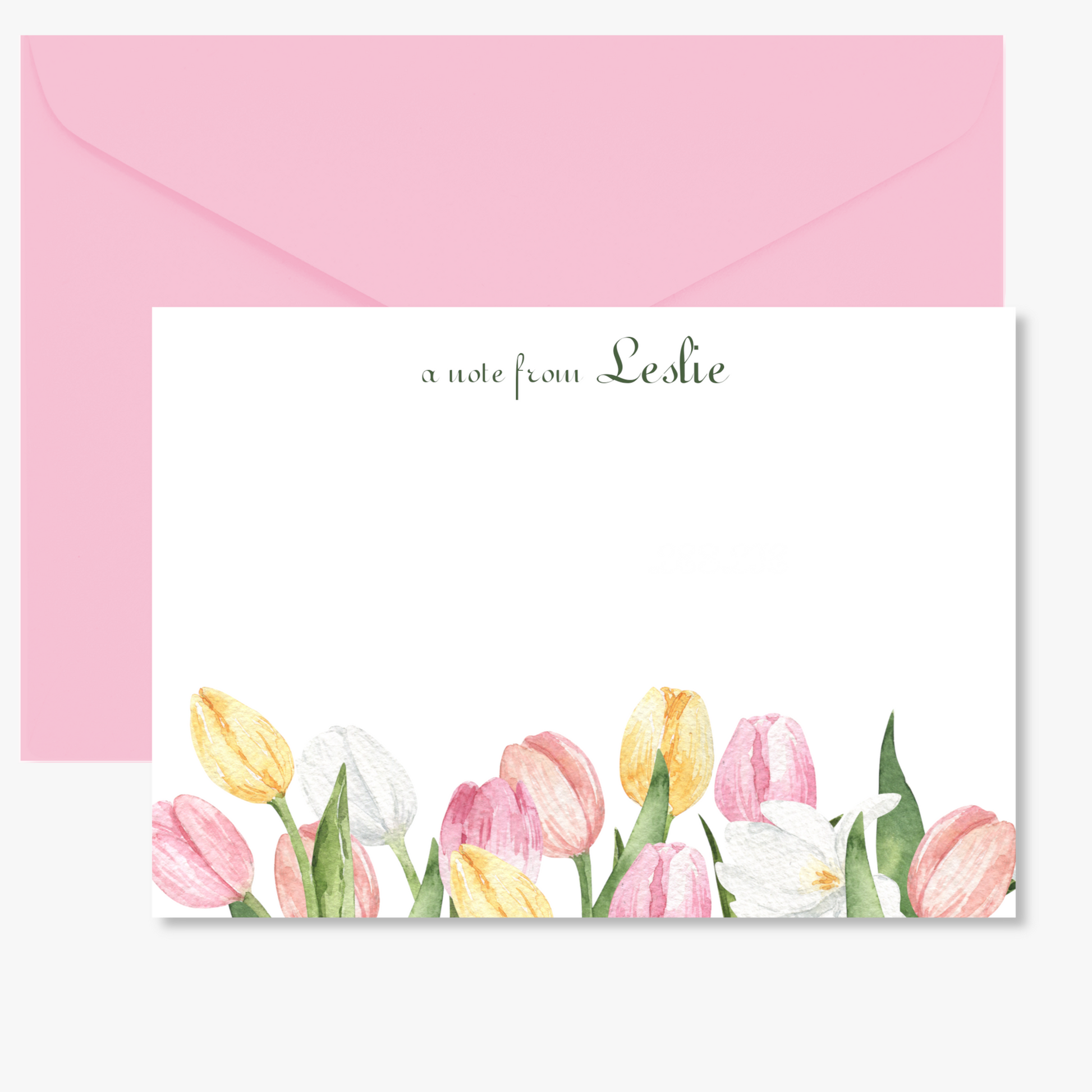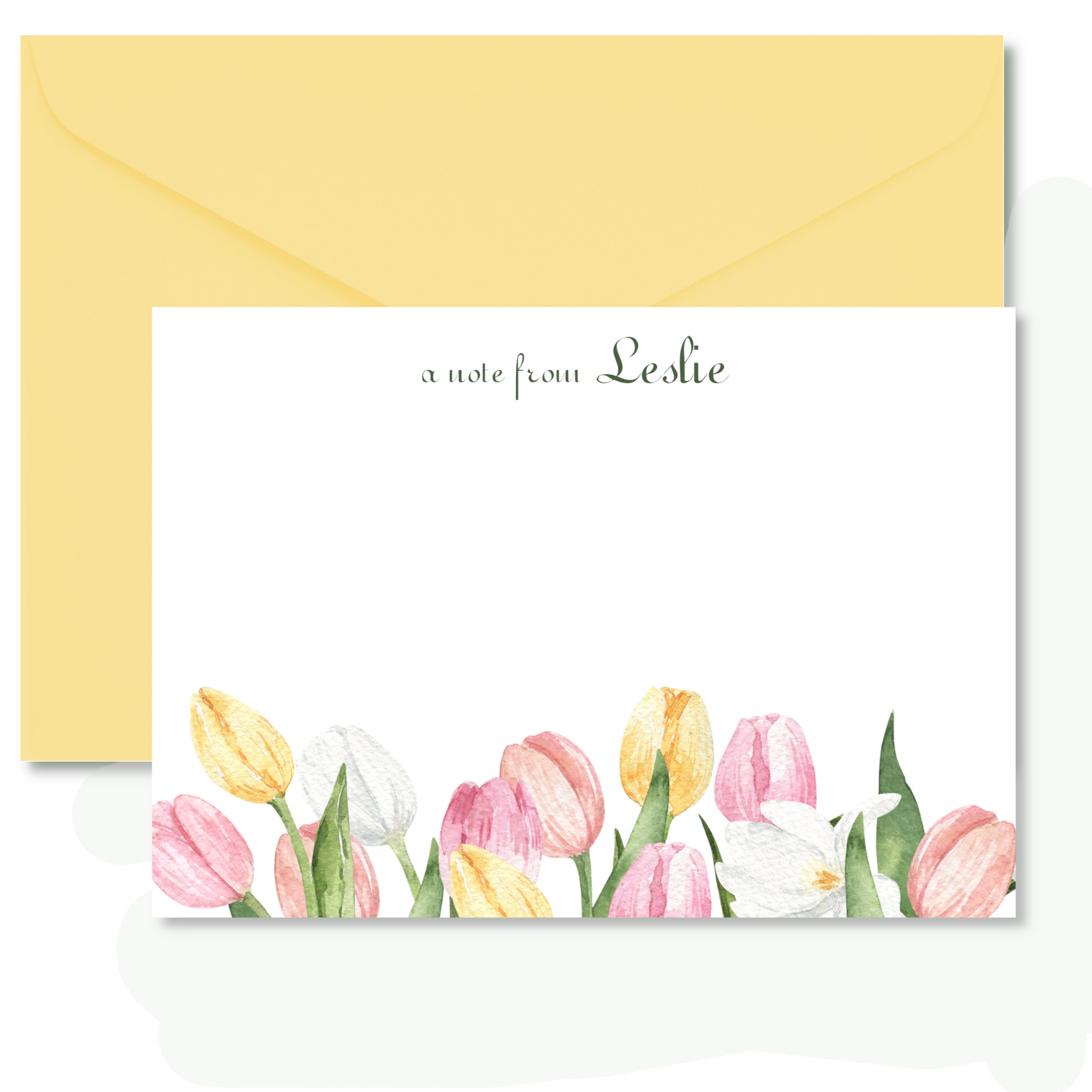 These Pastel Tulip Border Flat Notes are the perfect way to add a touch of elegance to your written correspondence. Featuring a charming border of watercolor tulips in soft pastel hues, these flat notes will make any message stand out. Perfect for sending a heartfelt note to a loved one or adding a personal touch to your business correspondence.