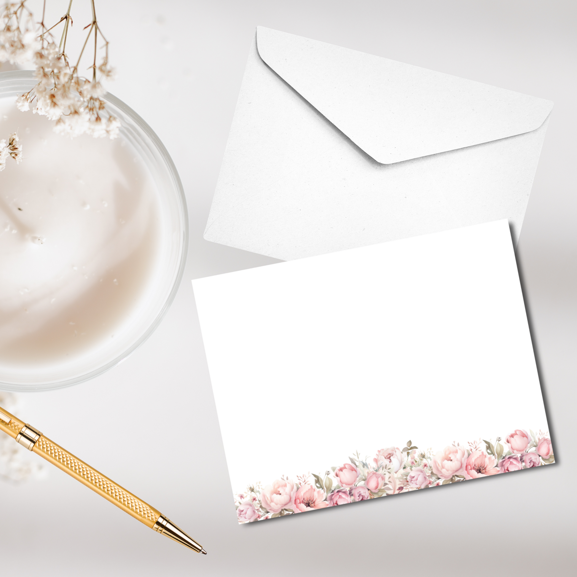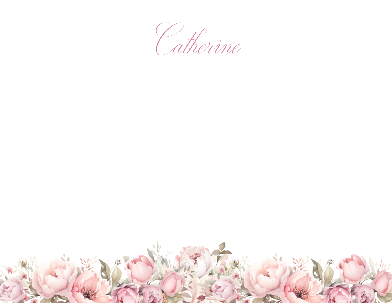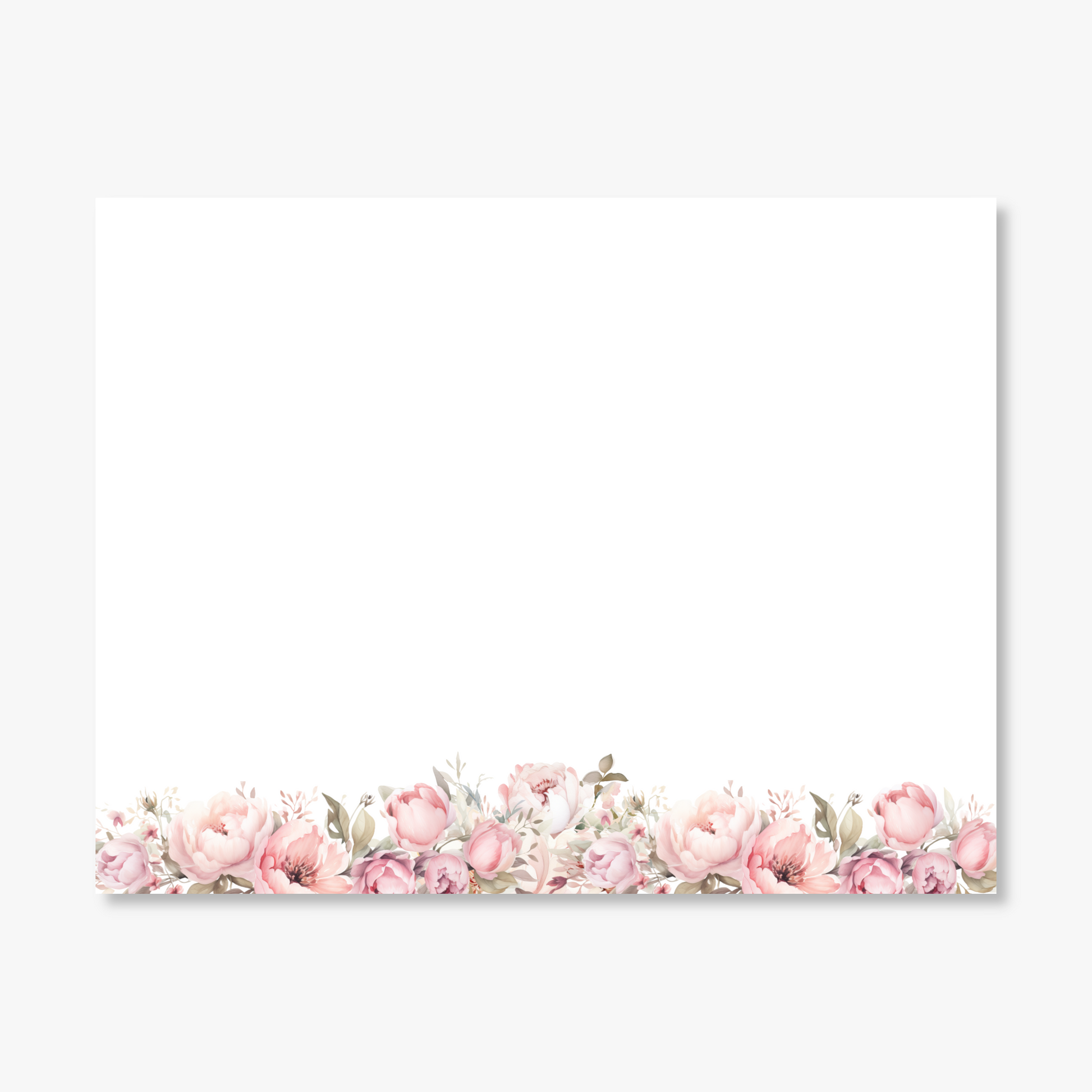 Add a touch of elegance to your notes with our Pink Peony Border Flat Notes. The delicate watercolor soft dusty rose color makes writing a pleasure. Express yourself in style. Personalize them for an extra special touch.