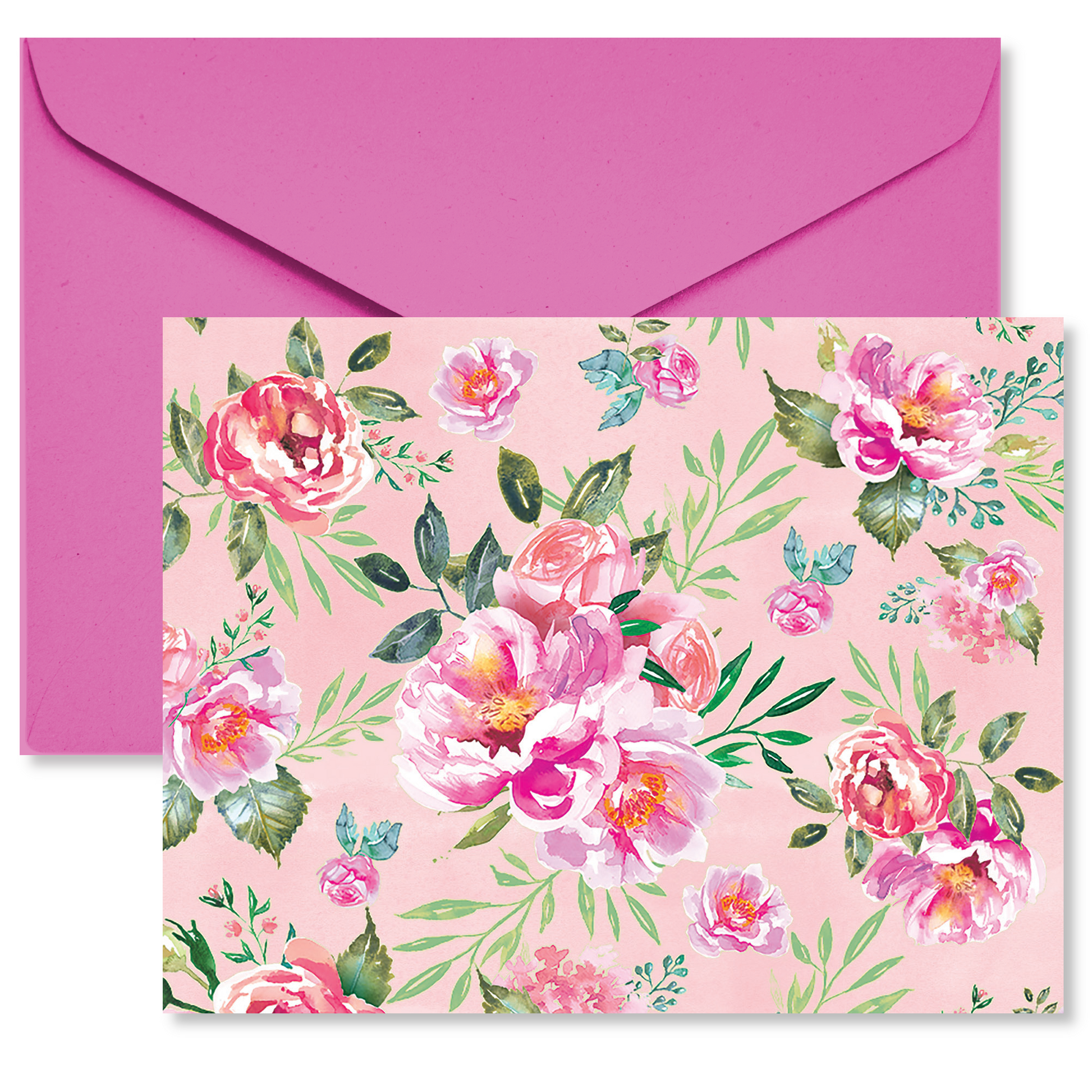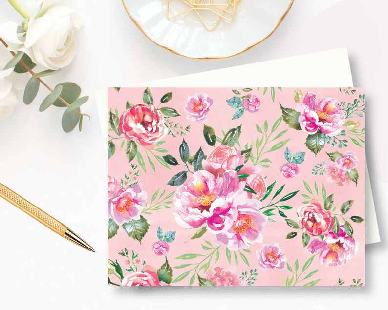 Add a pop of color and elegance to your correspondence with our Bright Pink Watercolor Rose Pattern Note Cards. Perfect for sending a heartfelt message or simple thank you note. Our premium quality cards are sure to impress and brighten anyone's day.