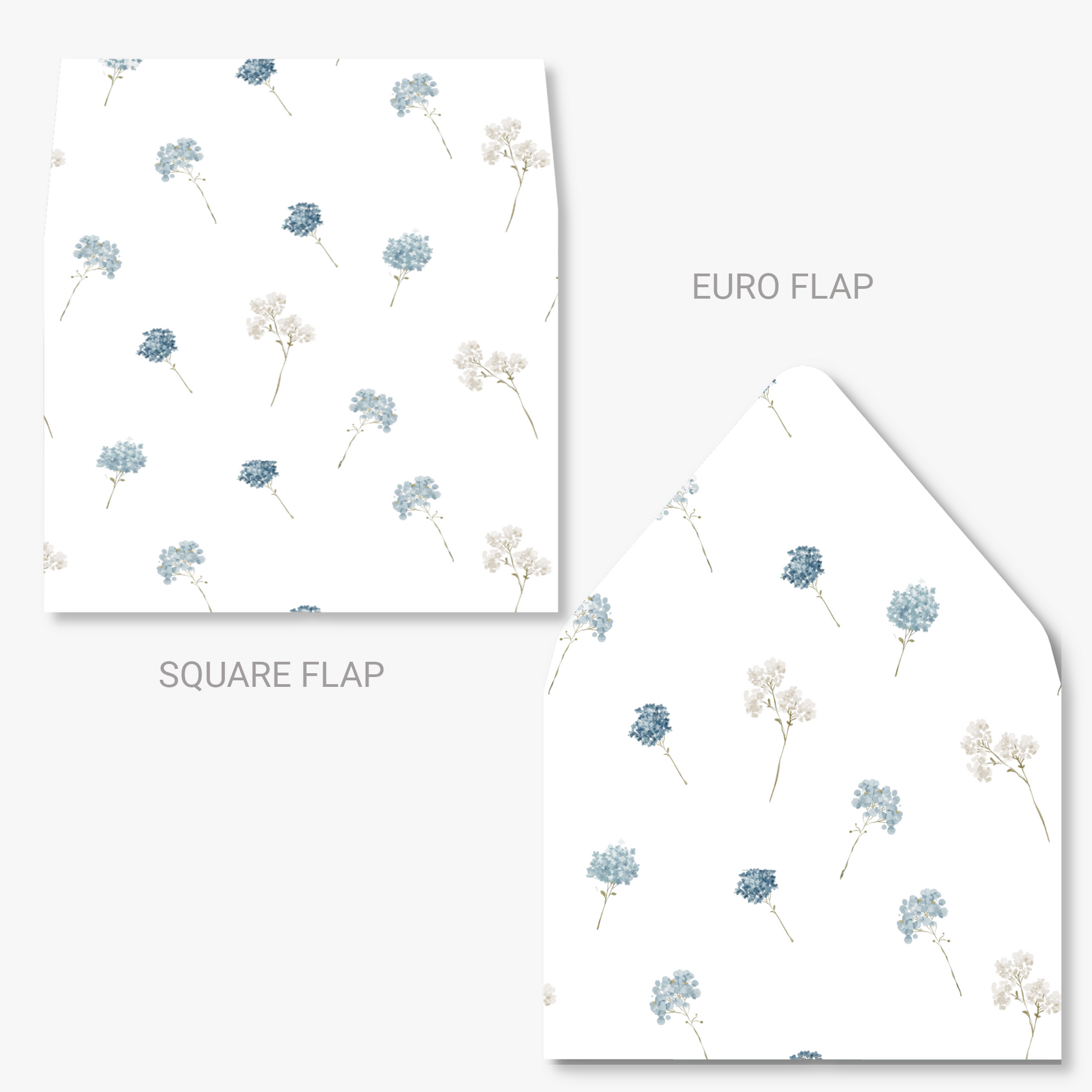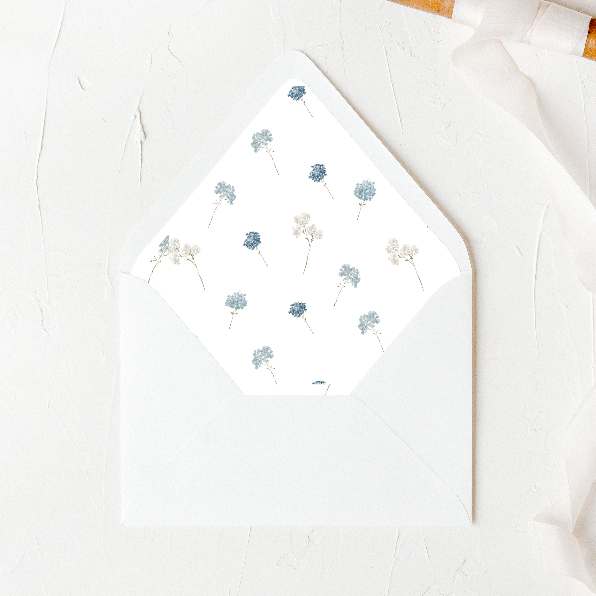 Add a special touch to your correspondence with our Watercolor Blue Floral Patterned Envelope Liners. The unique design and high-quality printing will elevate your envelopes and impress your guests. Perfect for dressing up thank you notes, personalized stationery, or anywhere you want you want your note cards to stand out.