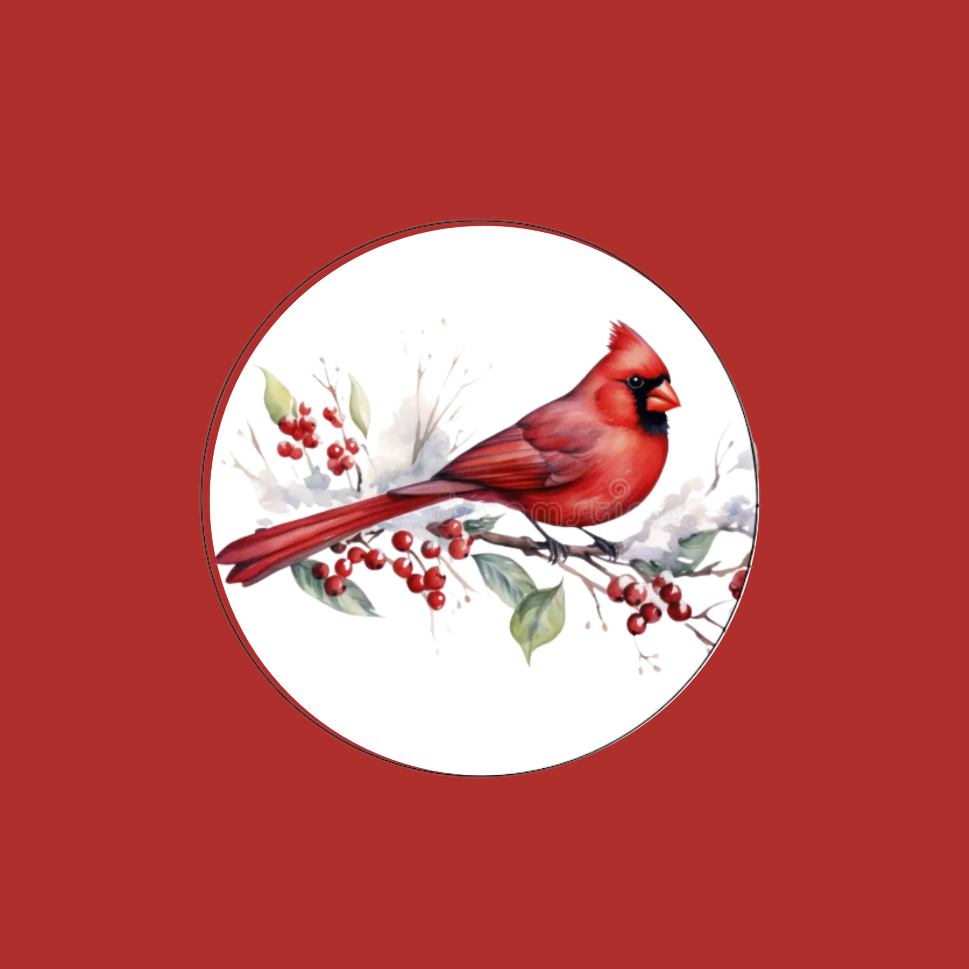 Elevate your holiday packaging with our Red Cardinal and Snow Round Labels, featuring a beautiful watercolor red cardinal perched on a snowy branch. These labels add a festive touch to any package or envelope ,Make your gifts stand out and spread some cheer with this charming label.