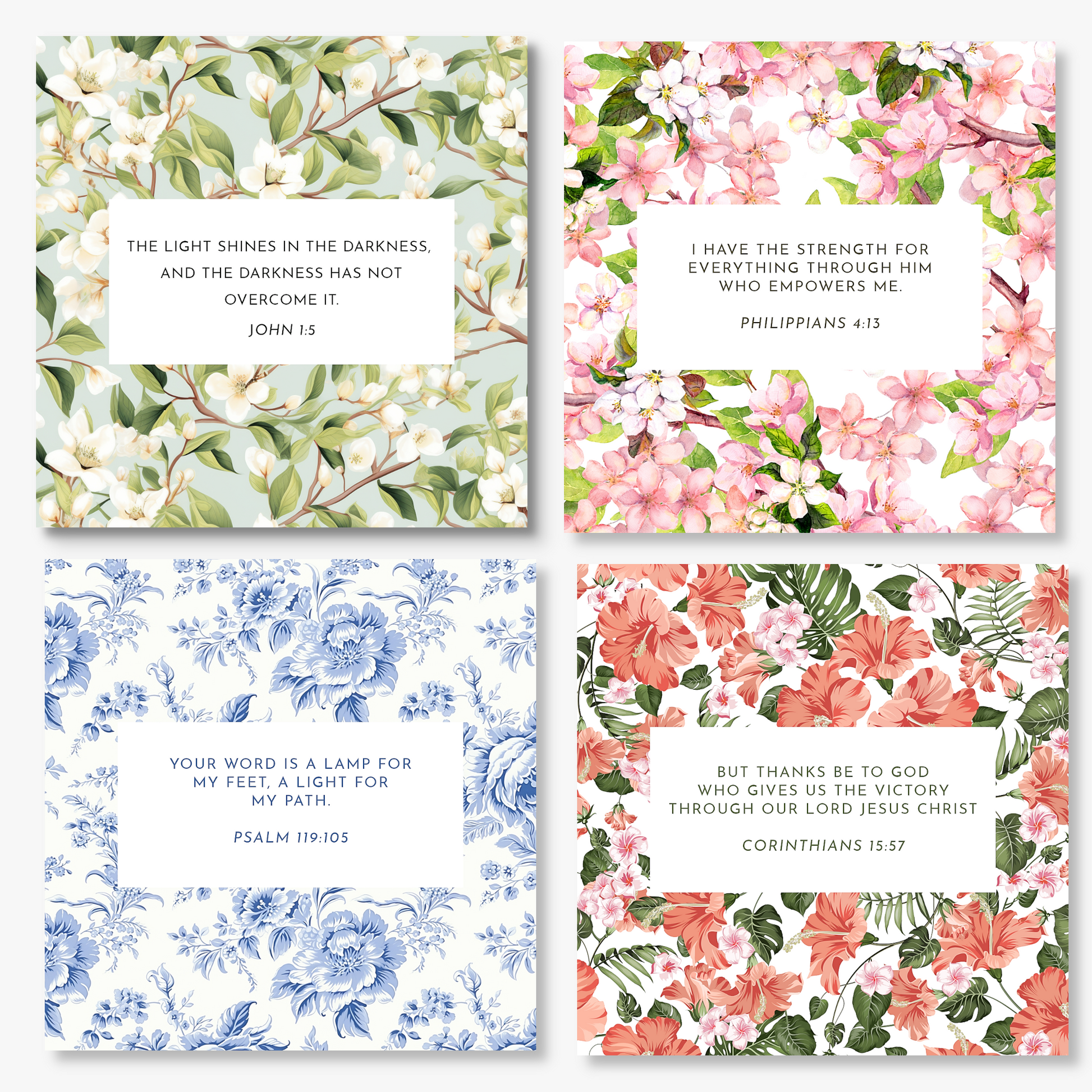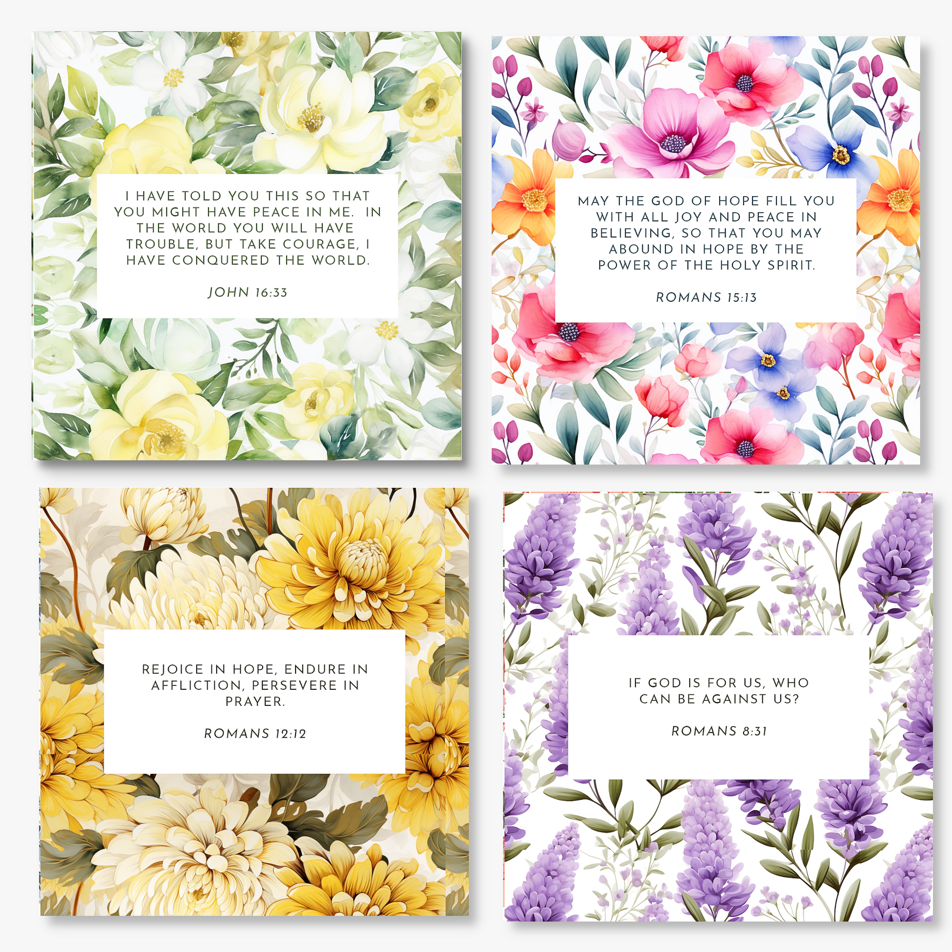 Enhance your daily spiritual practice with our Scripture Cards. Each set includes ten beautifully designed 4x4 cards, featuring powerful verses paired with vibrant watercolor floral backgrounds. Meditate on these uplifting words to bring peace and positivity into your life.