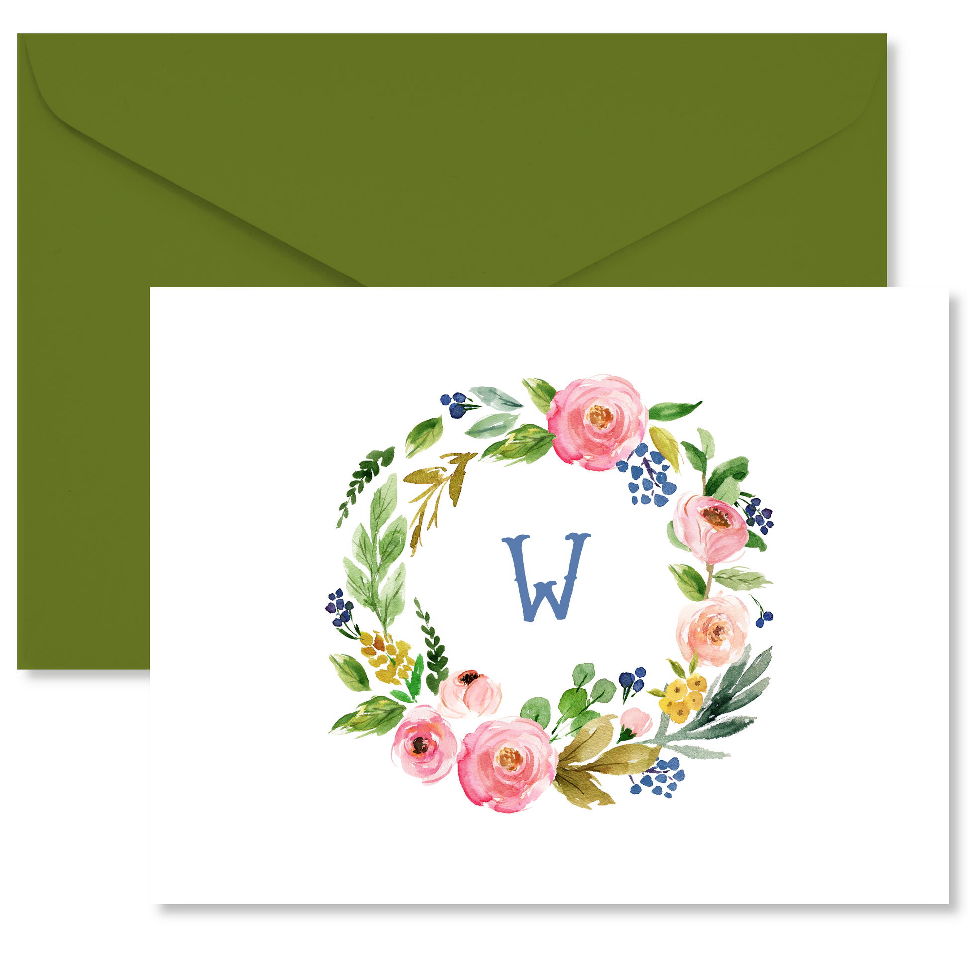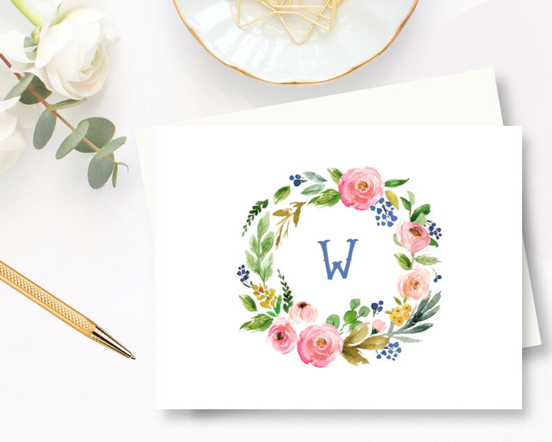 Add a personal touch to your correspondence with these beautiful watercolor Spring Floral Wreath Monogram Note Cards. Not only do they make a great personalized gift, but they also add a touch of spring to any message. Share some love with every card!
