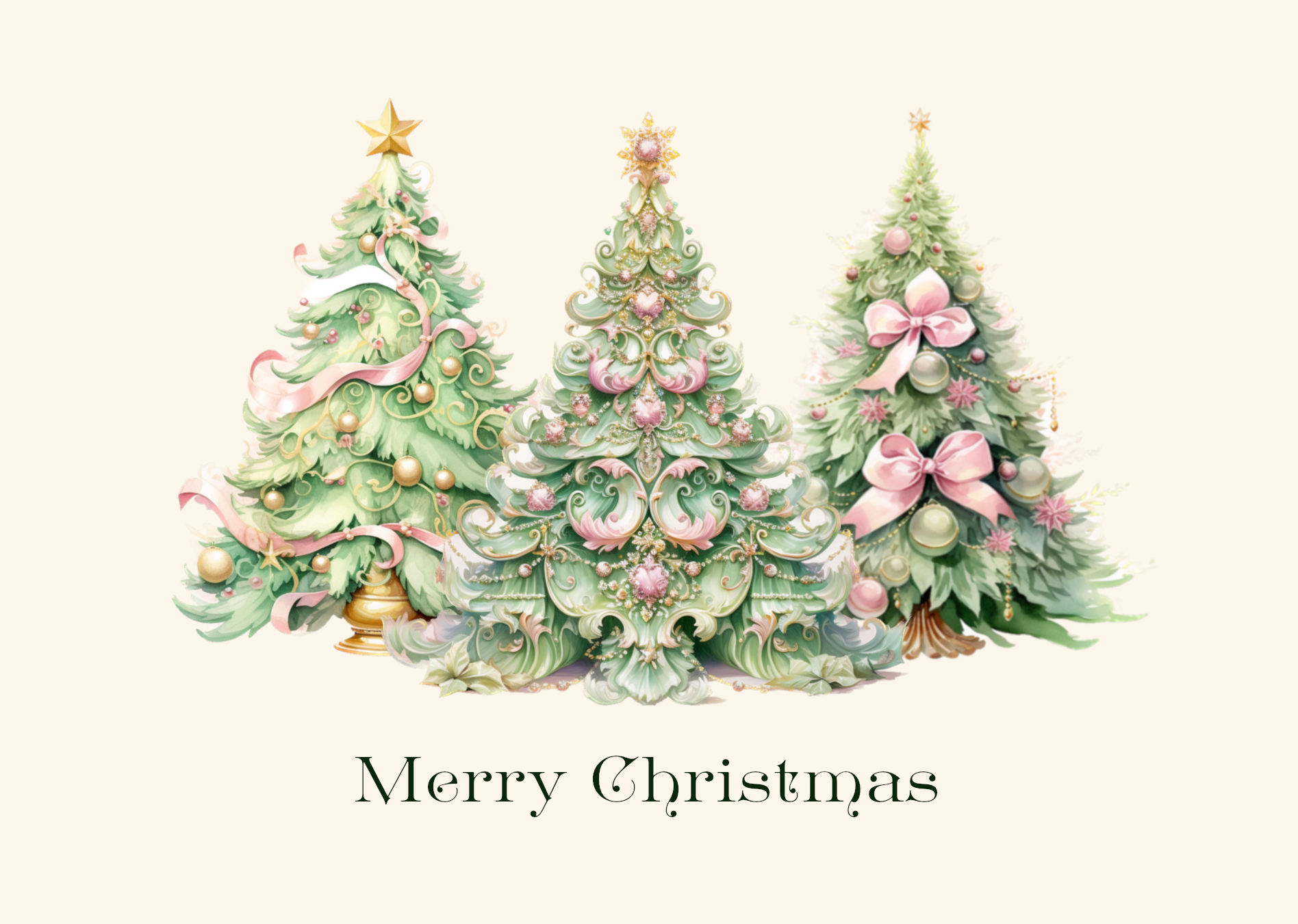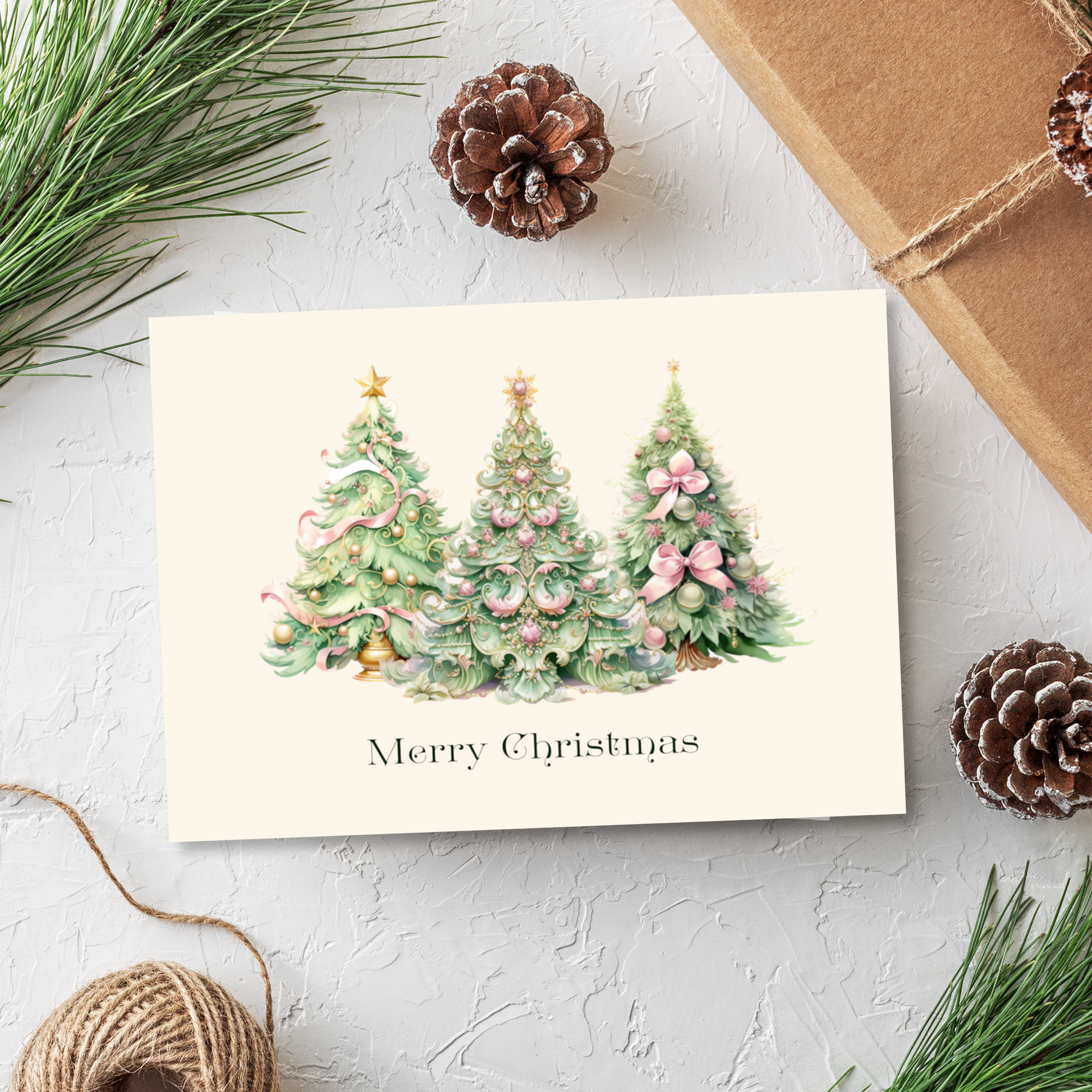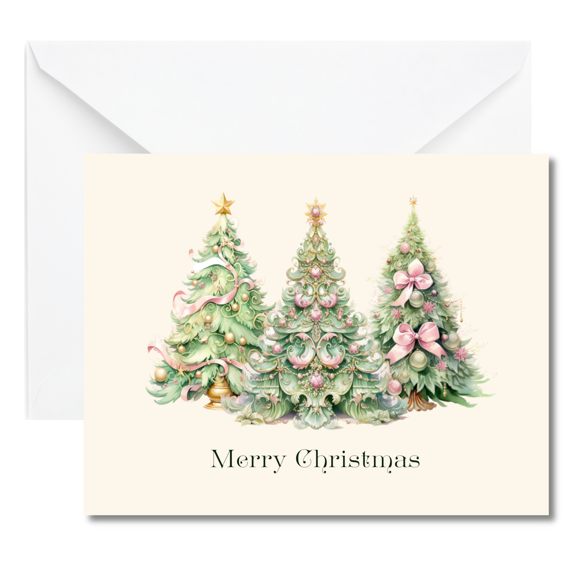 Share the joy of the holiday season with our Victorian Trees Christmas Card. The soft pastel watercolor trees, adorned with Victorian style ornaments, make the perfect festive greeting for your loved ones. Send your warm wishes and spread the holiday spirit with this charming card.