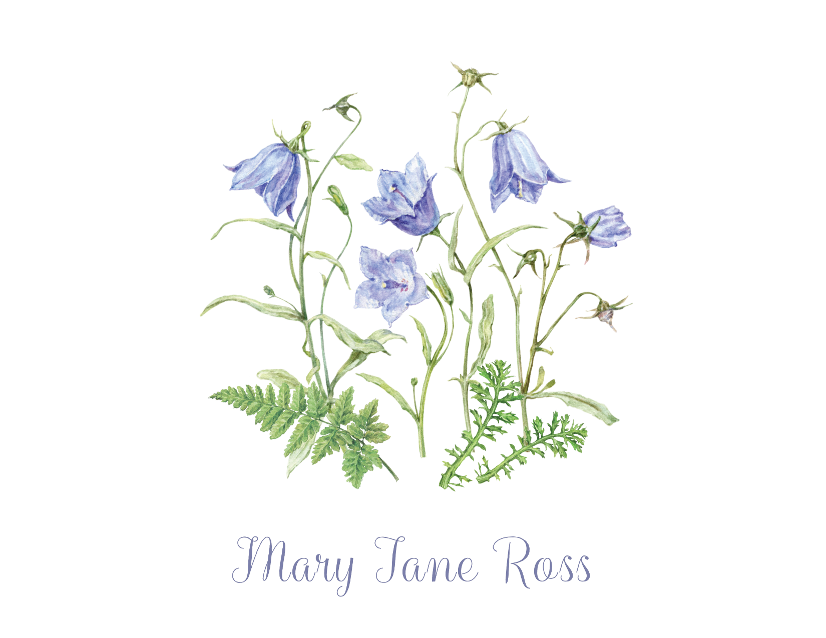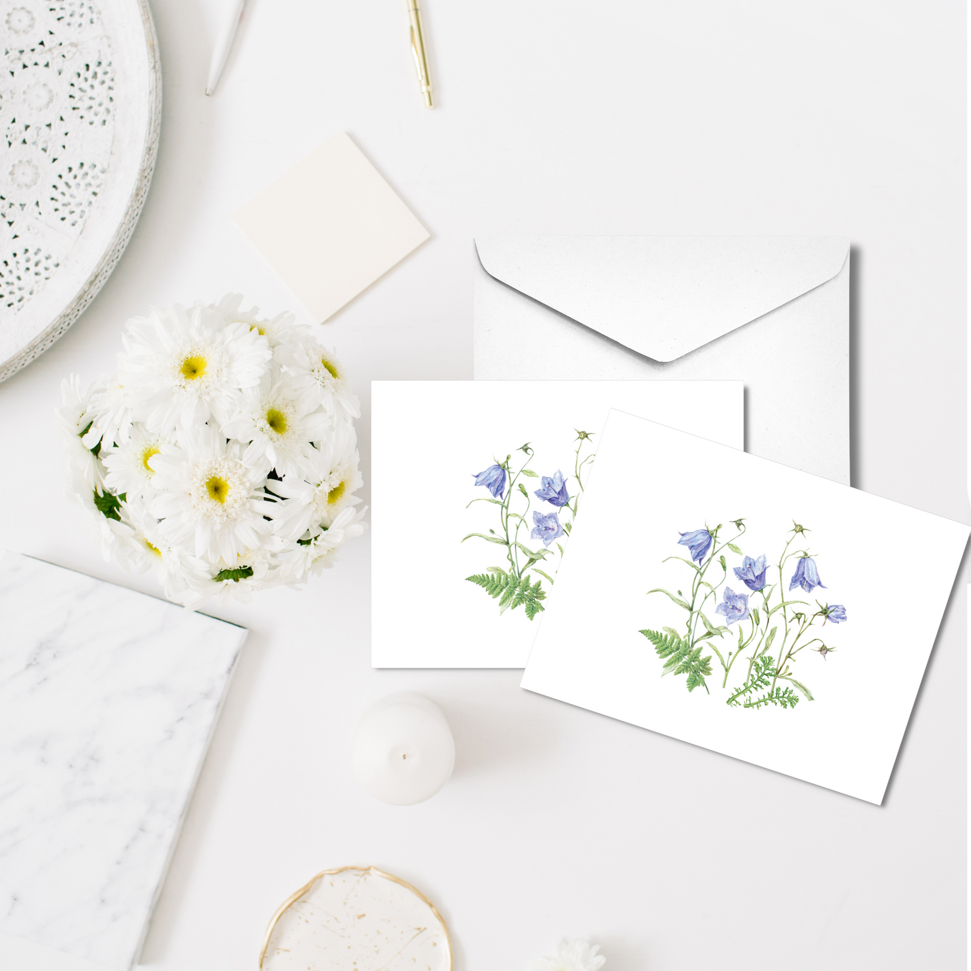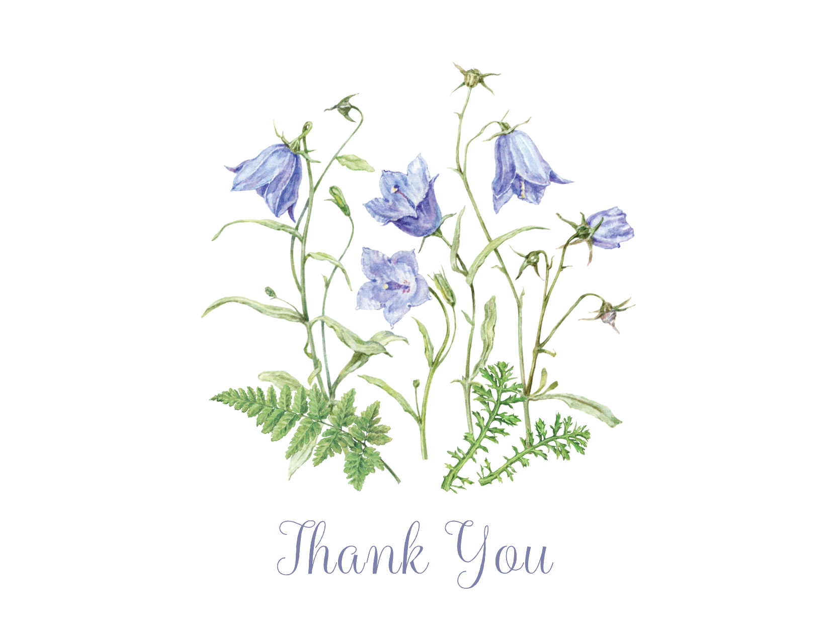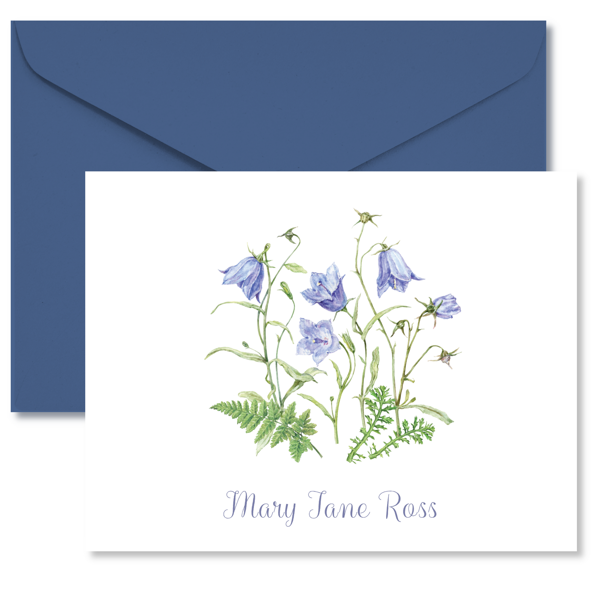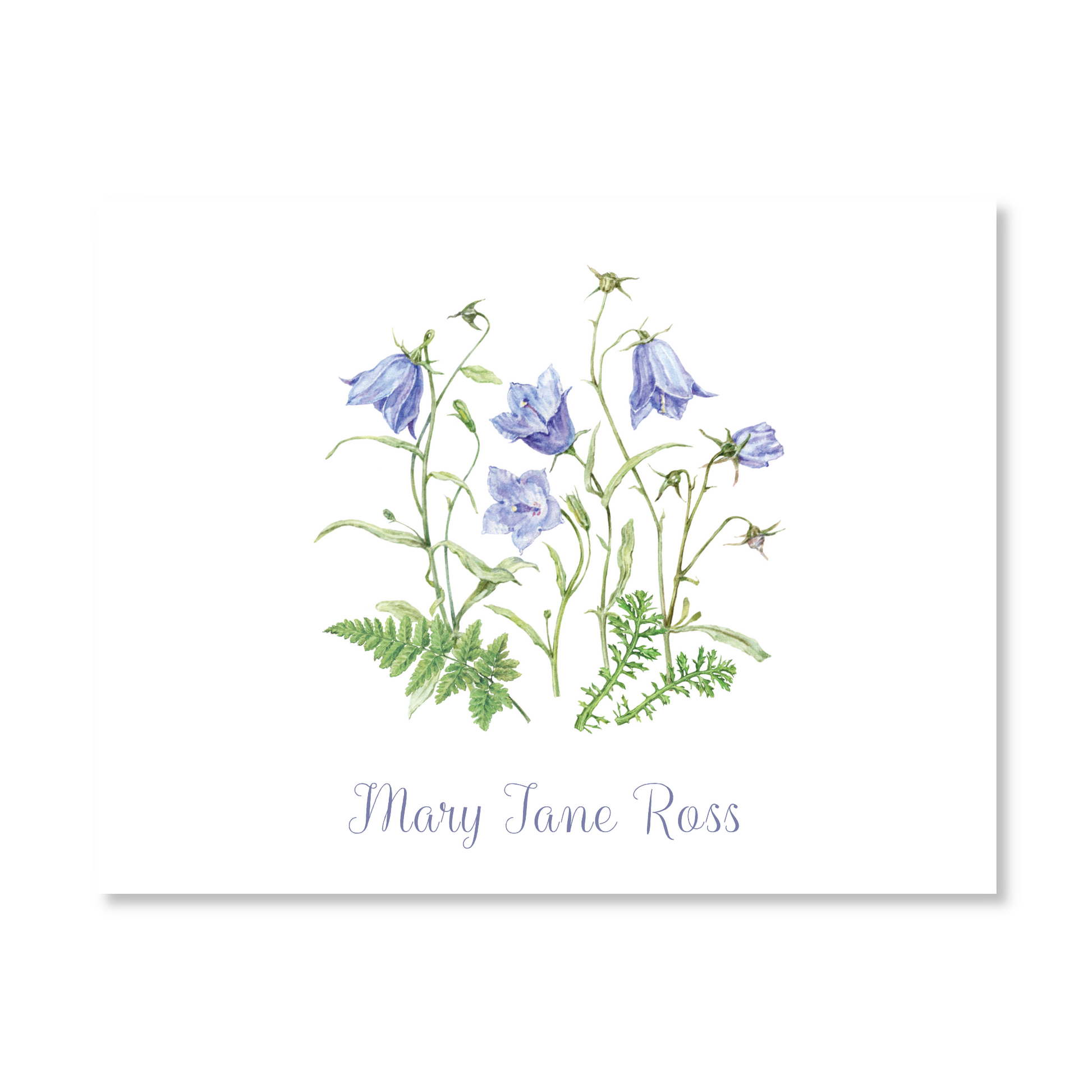 These personalized note cards feature a delicate watercolor design of a most beautiful shade of blue bellflowers. Send heartfelt thank-you messages with a personal touch. Also makes a sweet gift!
