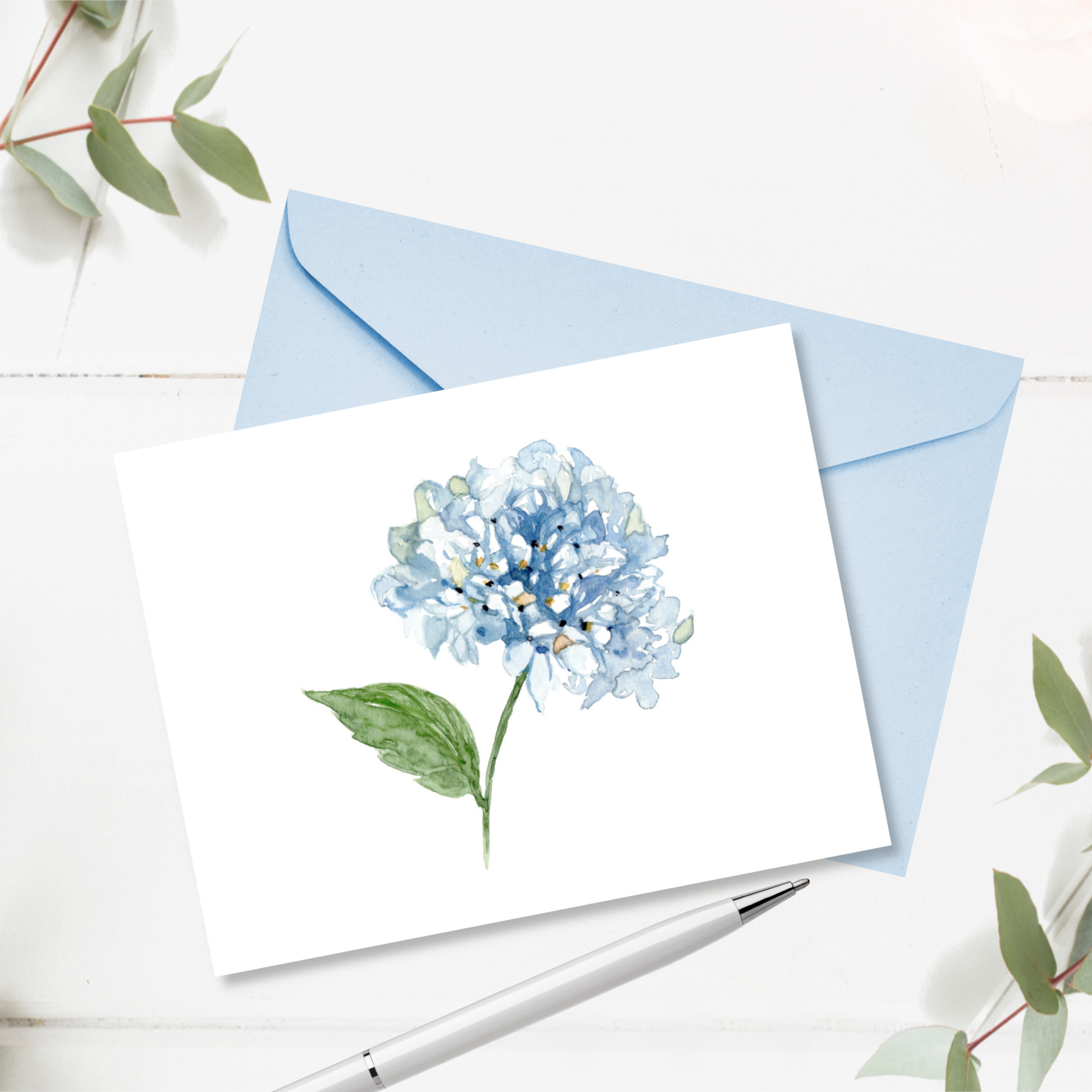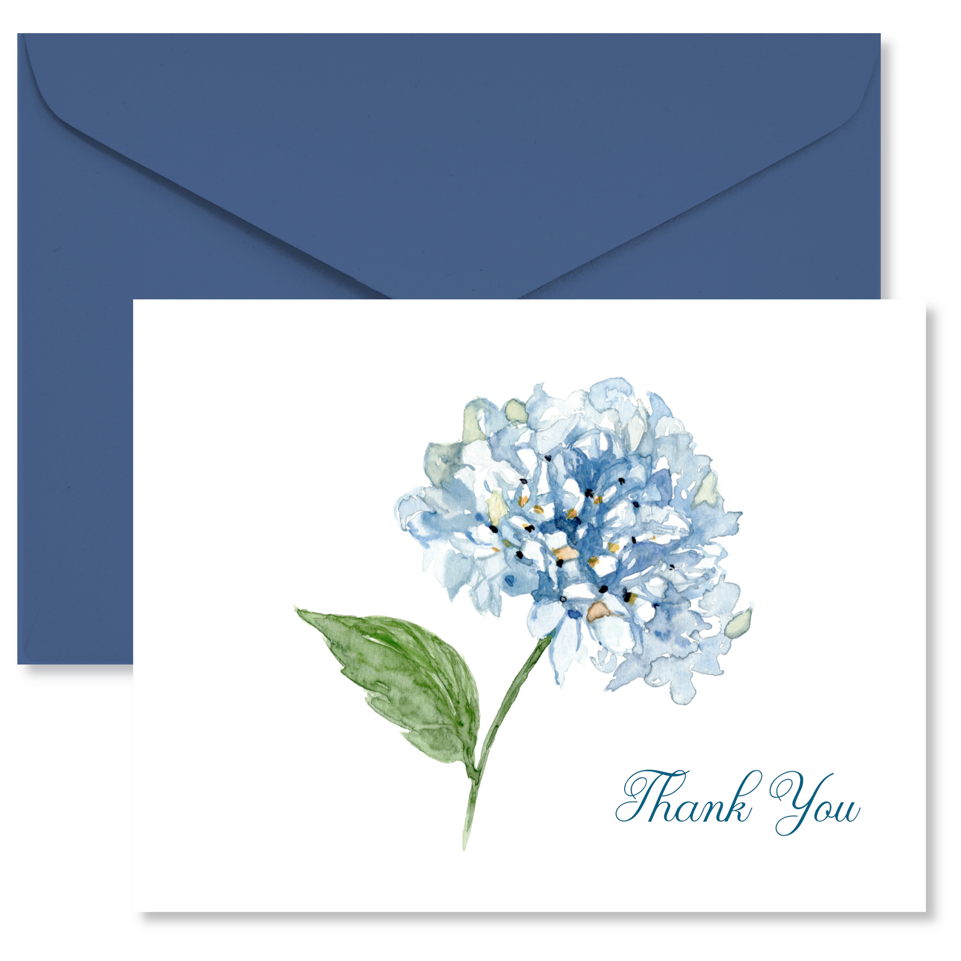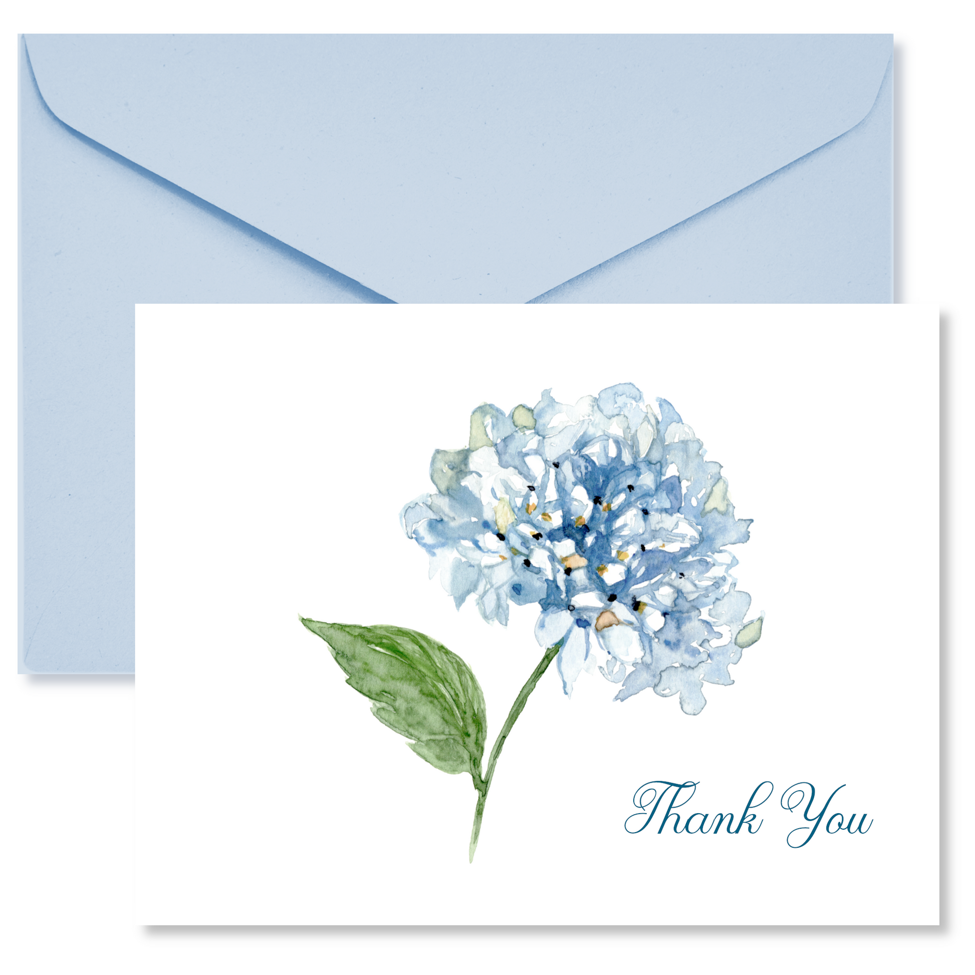 Writing a short note is a simple thing when you write from the heart. Express genuine gratitude in your own words using these notes featuring a single watercolor blue hydrangea, or have a set personalized for someone you know who loves unique stationery as much as you do.