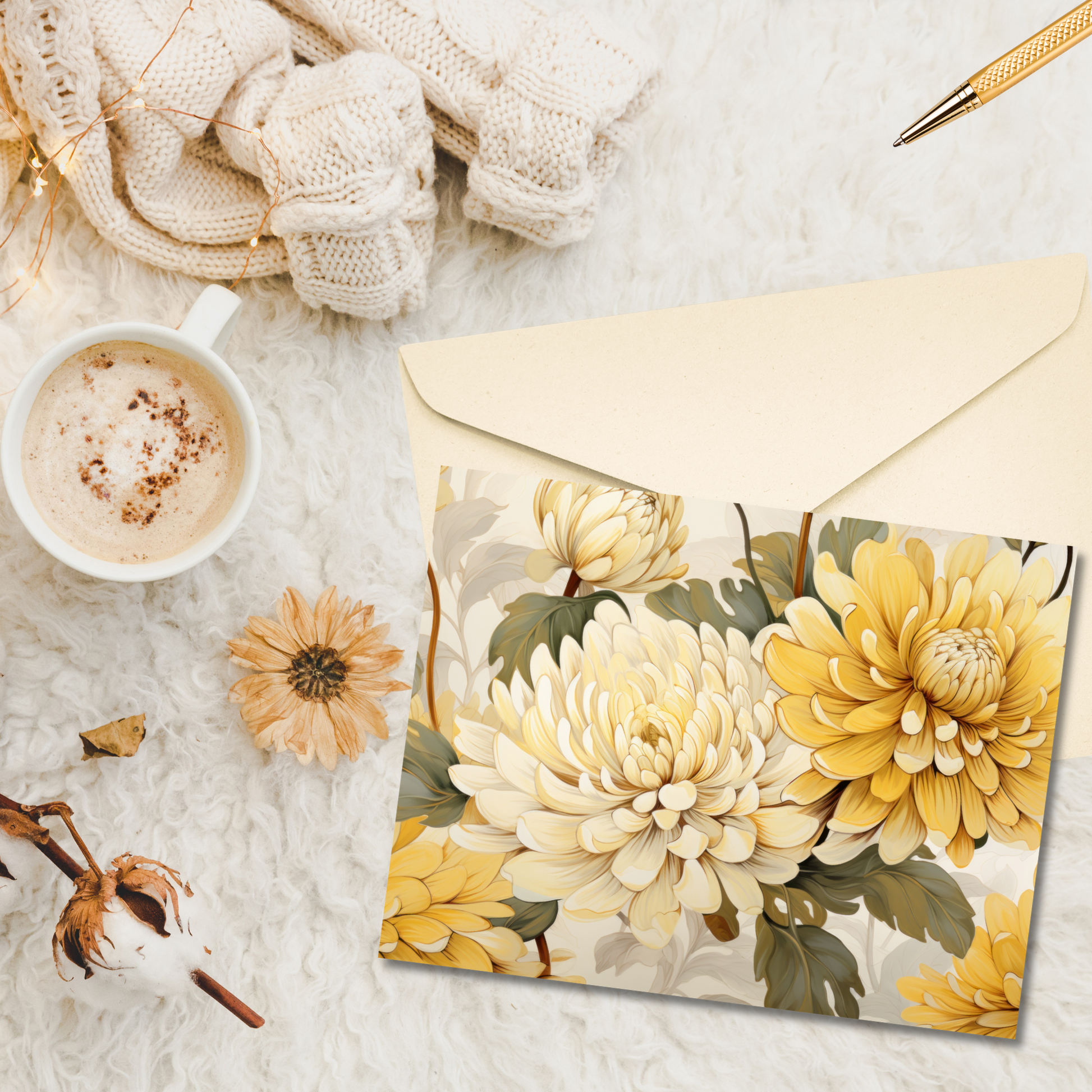 Add a touch of autumn beauty to your correspondence with our Watercolor Chrysanthemums Note Cards. Featuring autumnal watercolors in vibrant tones, these note cards are perfect for any occasion. Send a heartfelt message in style with our large and bold blossom note cards.